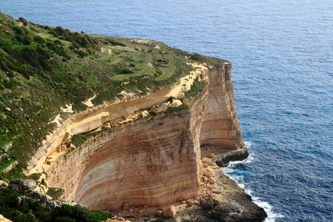 Kolejne ciekawe miejsce które mieliśmy okazję zobaczyć to Klify Dingli. Znajdują się one w południowo zachodniej części wyspy. Jest to ponad 200 m formacja skalna skąd roztaczają się przepiękne widoki. Kiedyś była one naturalną obrona wybrzeża Malty. Udaliśmy się tam oczywiście autobusem i wysiedliśmy na przystanku Cliffs przy punktach widokowych. Wzdłuż klifów ciągnie się trasa widokowa, a przejście jej zajmuje kilkadziesiąt minut. Dodatkowo po drodze napotkamy 17 wieczną kaplicę św. Marii Magdaleny, która wybudowana jest praktycznie przy urwisku.