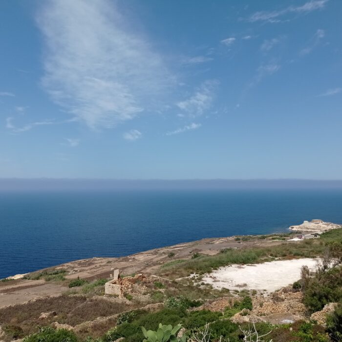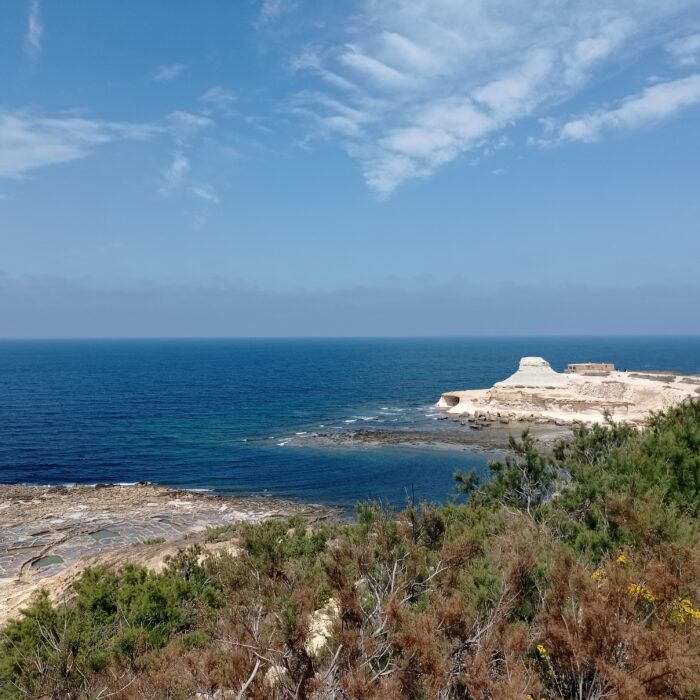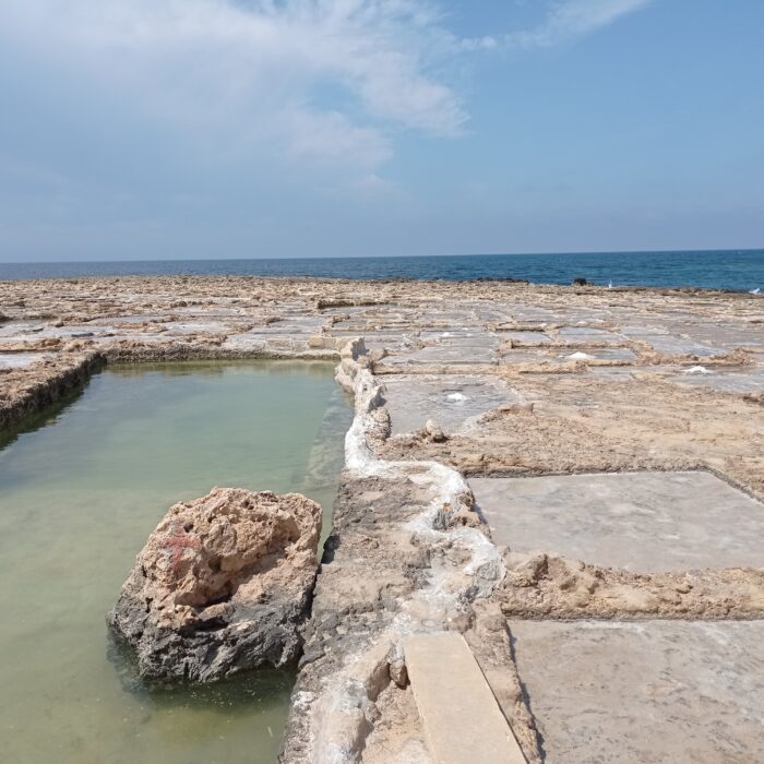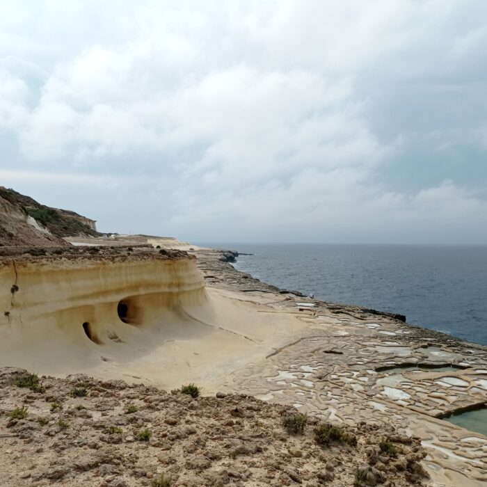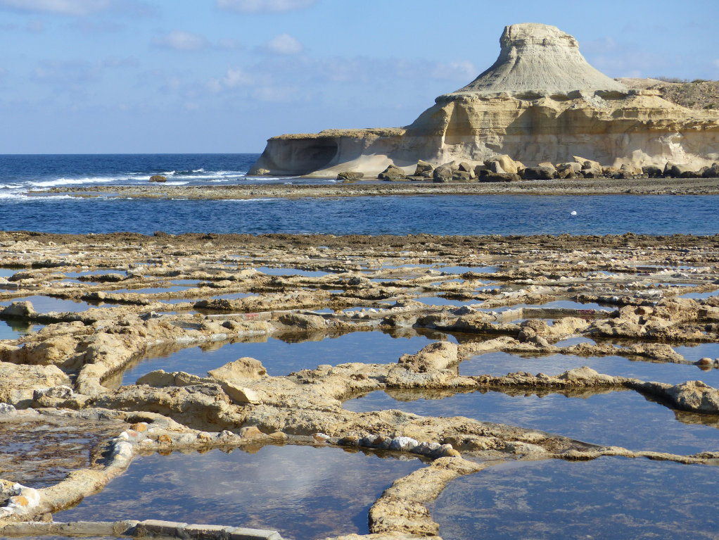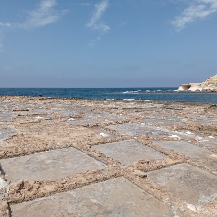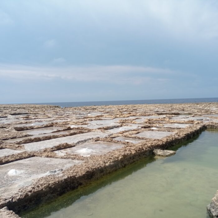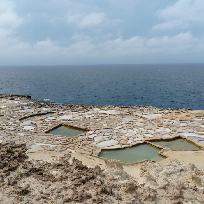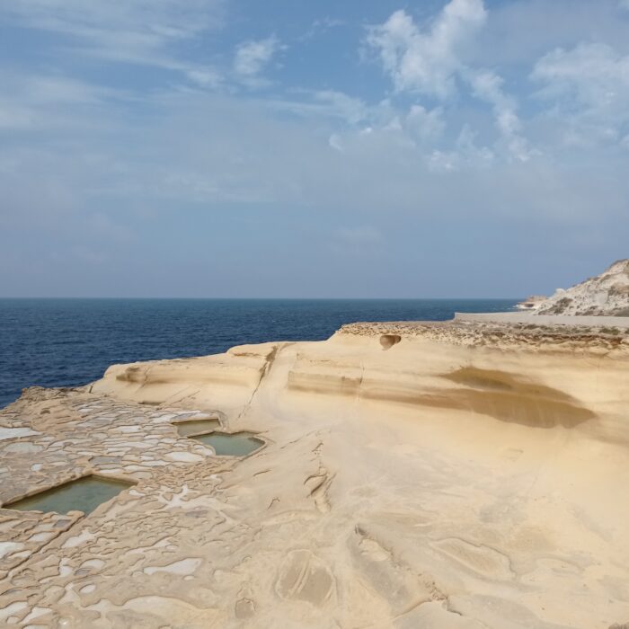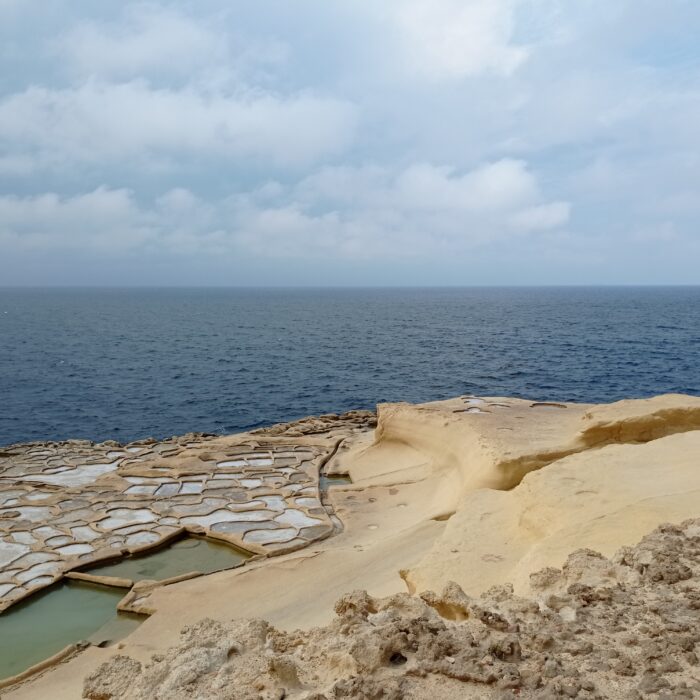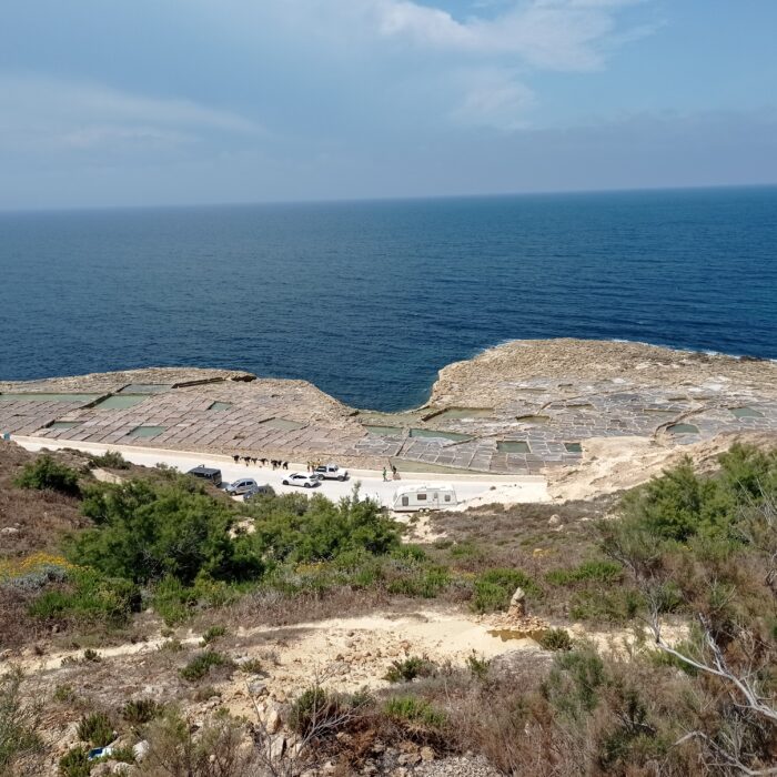 Stamtąd udaliśmy się na wybrzeże Gozo do Xwejni Bay gdzie znajduje się m.in. piękna zatoka z charakterystycznym stożkiem wapiennym. Warto zajrzeć też do pobliskiej płytkiej wapiennej jaskini powstałej w wyniku erozji a także przespacerować się po wzniesieniu skąd są piękne widoki na okolicę. Aby zwiedzić to miejsce to przyjechaliśmy autobusem do miejscowości Żebbuġ i z ostatniego przystanku pieszo zeszliśmy ok 1km nad same wybrzeże. Tuż obok jaskini możecie podziwiać panwie solne czyli baseny solankowe, które od wieków były miejscem uzyskiwania soli poprzez odparowanie wody morskiej. Miejsc takich jak to jest więcej na Gozo i najwięcej znajduje się w północnej części wyspy. Następnie wybrzeżem wzdłuż panwi solnych dotarliśmy do Doliny il-Għasri, której wody łączą się z morzem. Jest to wąwóz morski, znany jest szczególnie nurkom. Aby można się tam pokąpać trzeba zejść kamiennymi schodkami w dół na małą kamienistą plażę. Nie jest to często odwiedzane przez ludzi miejsce i dlatego możemy polecić je na odpoczynek. Trasa wzdłuż wybrzeża to ok 8 km. Stamtąd podeszliśmy na przystanek skąd autobusem, promem i znowu autobusem dojechaliśmy do noclegu w Mside, po drodze oczywiście wpadając na kolację kosztując kolejnych miejscowych potraw.