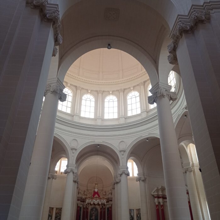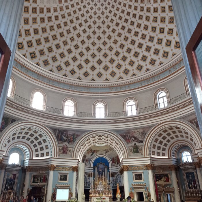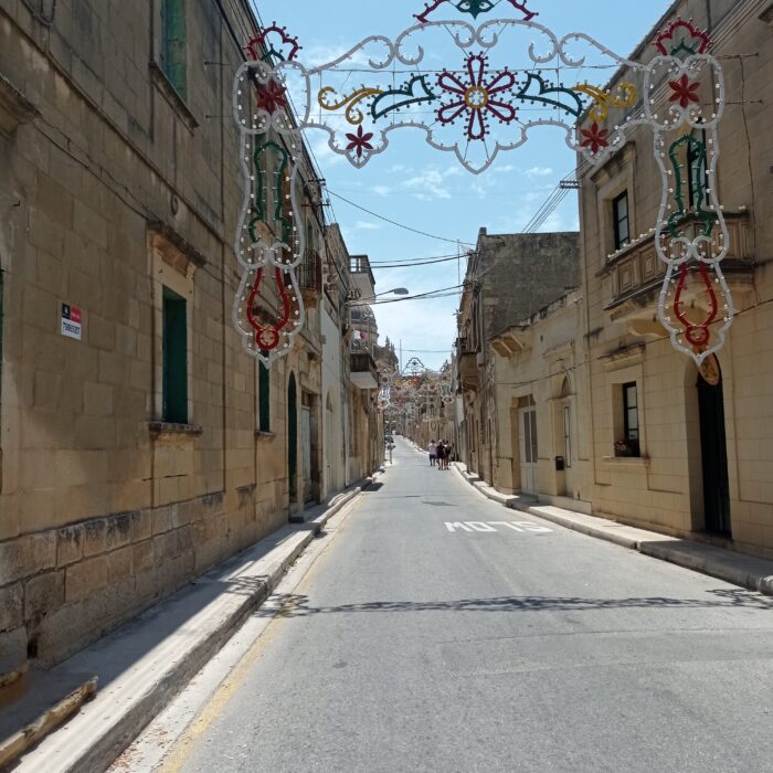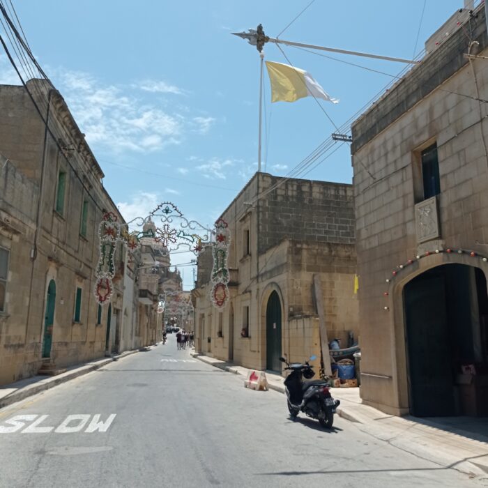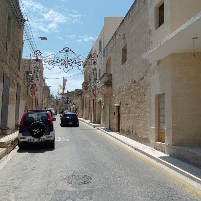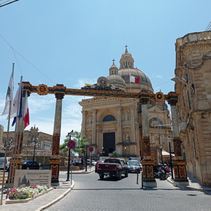 Jest tam kilka przystanków, my wybraliśmy ten najbliżej najbliżej Rotundy św. Jana Chrzciciela. Jest to największy kościół na wyspie i jeden z najbardziej charakterystycznych punktów na Gozo. W związku z tym, że na Gozo byliśmy podczas święta Narodzenia Świętego Jana Chrzciciela to droga do rotundy była przepięknie ozdobiona tego dnia.