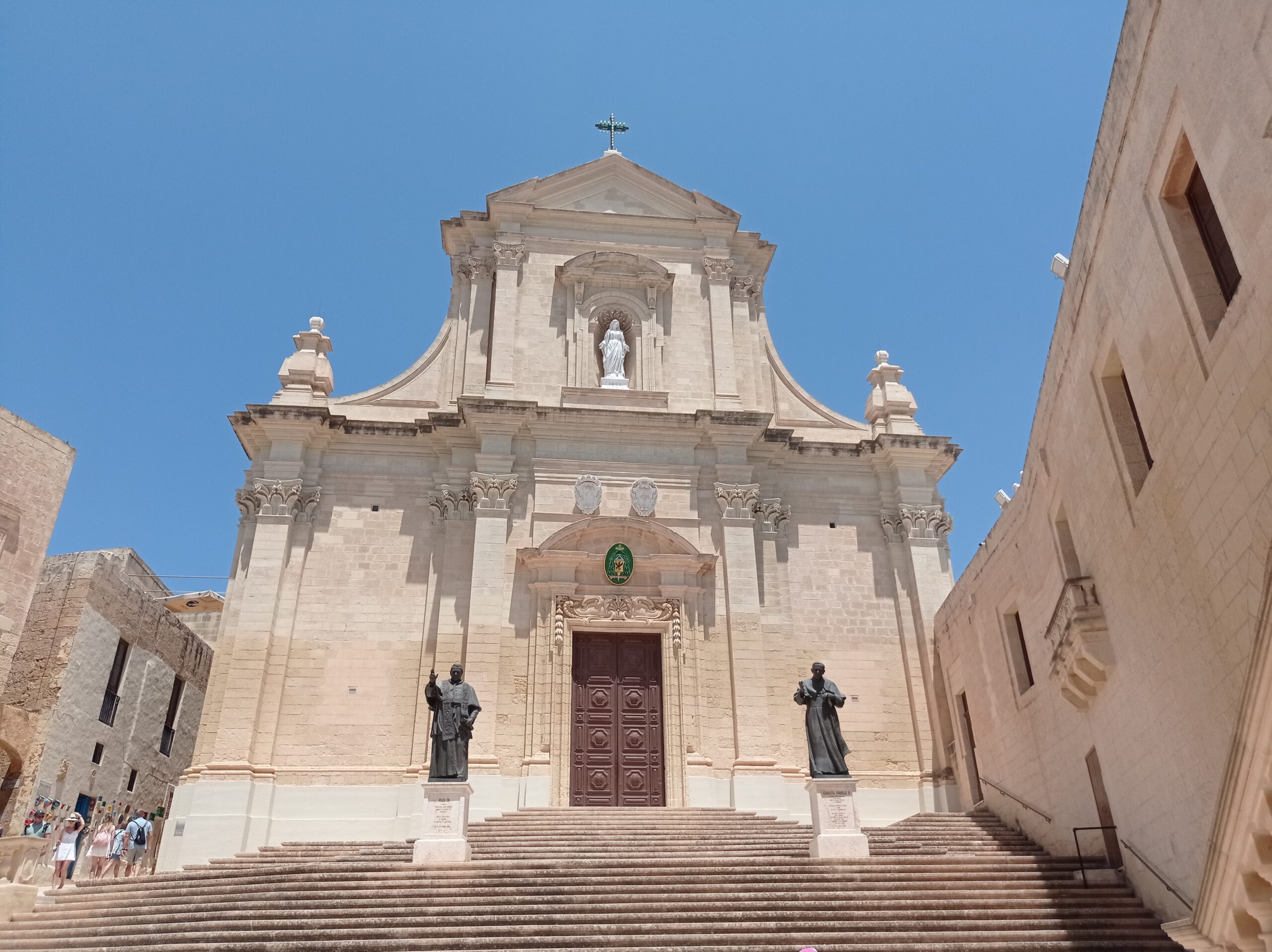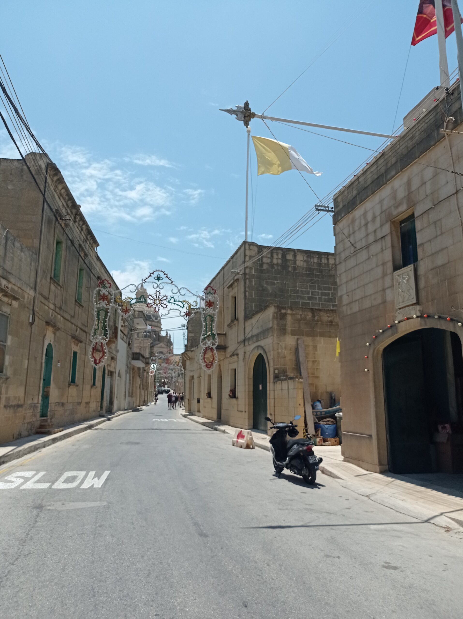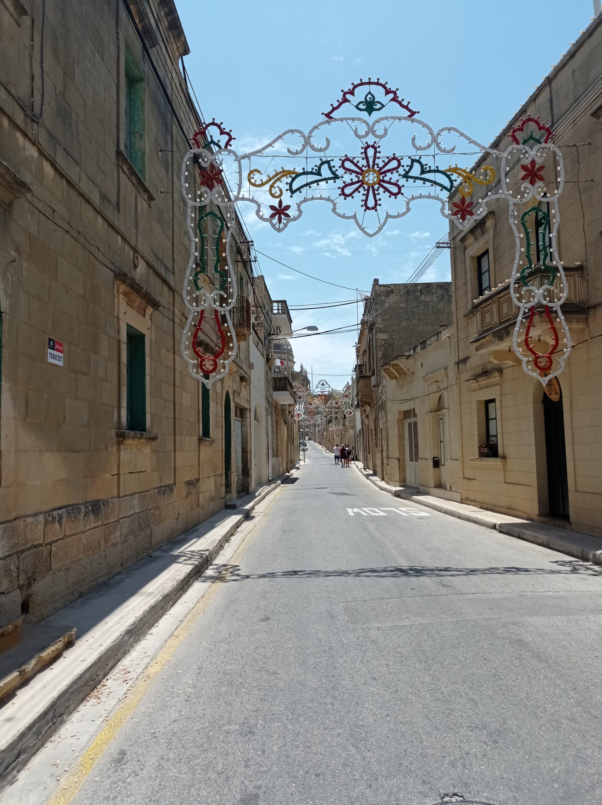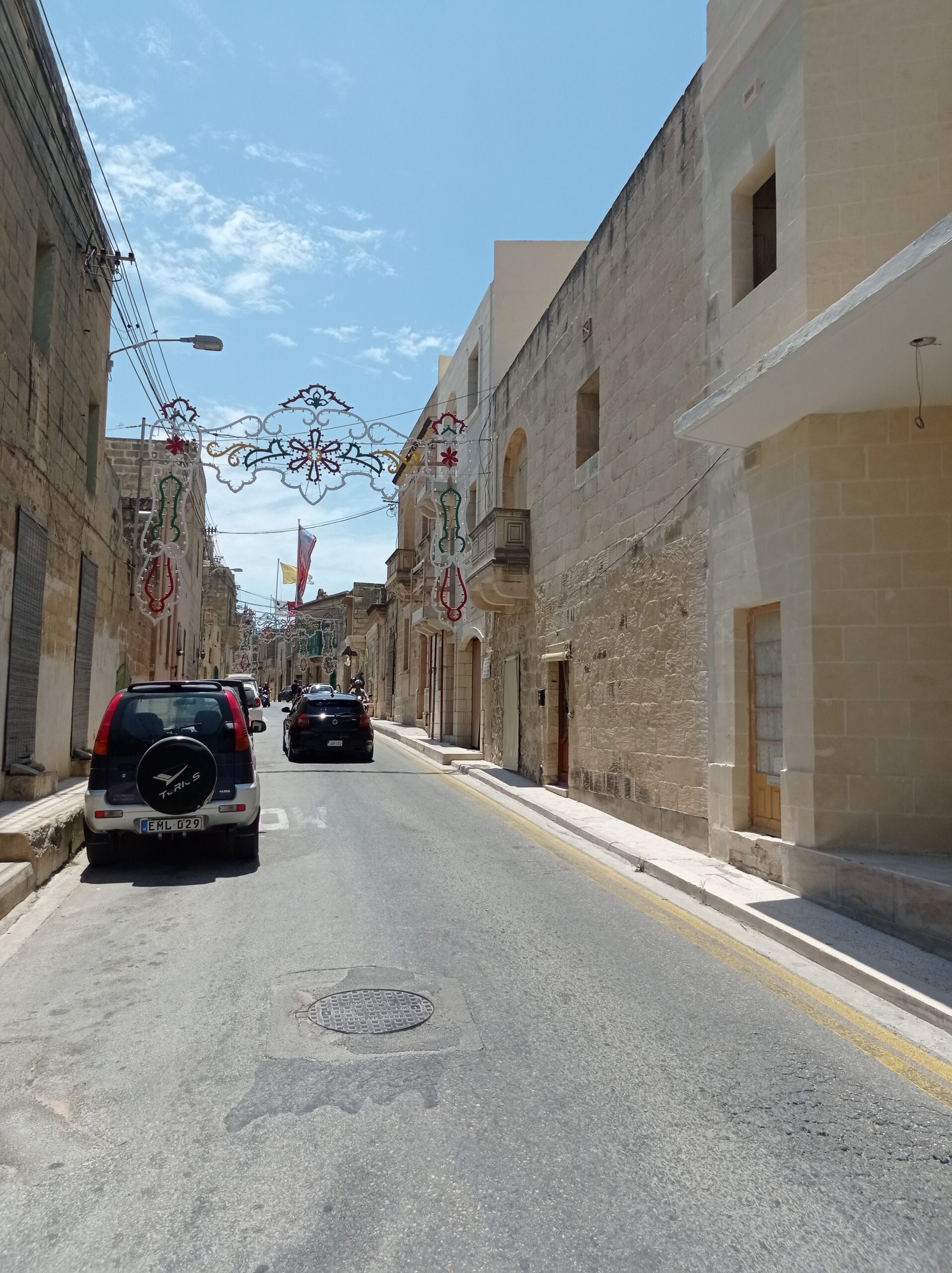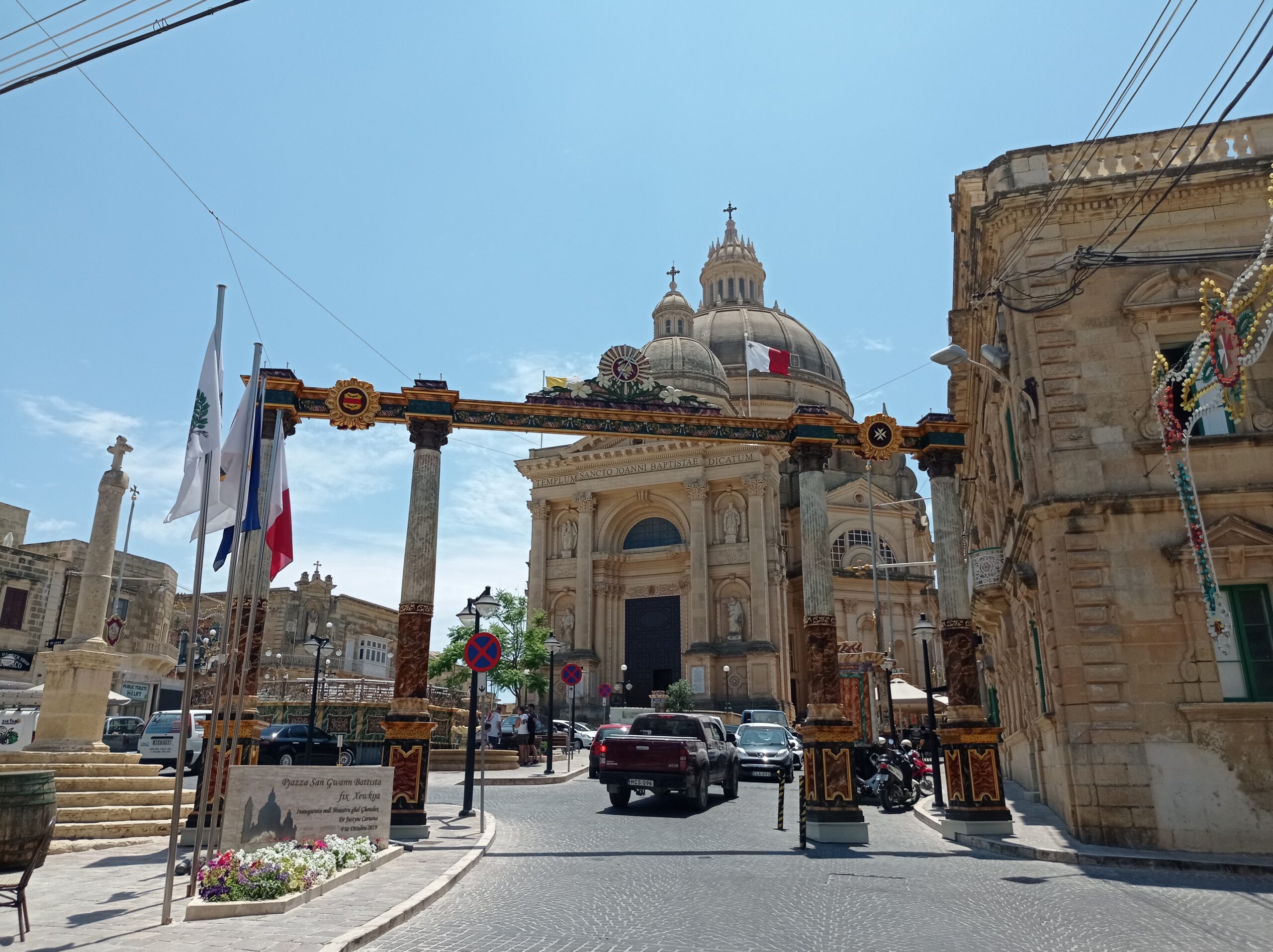 Jest tam kilka przystanków, my wybraliśmy ten najbliżej najbliżej Rotundy św. Jana Chrzciciela. Jest to największy kościół na wyspie i jeden z najbardziej charakterystycznych punktów na Gozo. W związku z tym, że na Gozo byliśmy podczas święta Narodzenia Świętego Jana Chrzciciela to droga do rotundy była przepięknie ozdobiona tego dnia.
