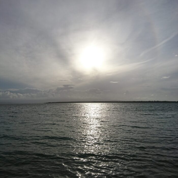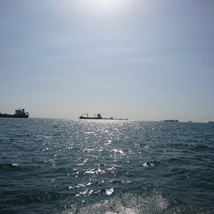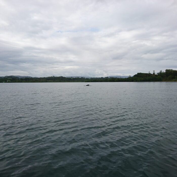 Łódź z kapitanem już na nas czekała, więc ruszyliśmy. Najpierw w planie było podziwianie delfinów. W praktyce wygląda to tak, że czasem uda się zobaczyć, jak któryś wyskoczy z wody — ale trzeba mieć sporo szczęścia.