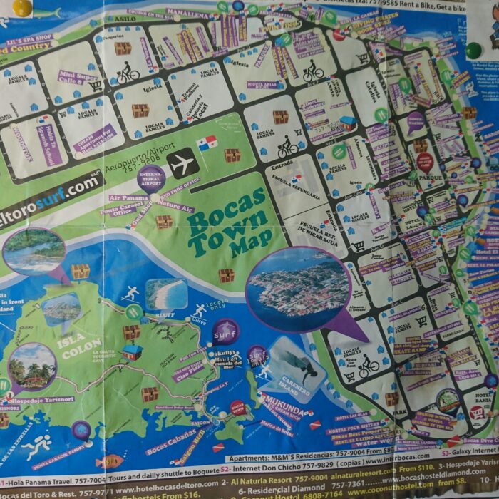 Bocas del Toro to archipelag, więc podobnie jak na San Blas transport pomiędzy wyspami odbywa się wyłącznie łodziami. Wyspy leżą na karaibskim wybrzeżu Panamy i słyną z wakacyjnej atmosfery, którą podkreślają kolorowe budynki, bary i wszechobecny surfingowy klimat ponieważ to jeden z najlepszych spotów surfingowych na Karaibach. Na szczęście kolejne dni w Bocas były już czystą przyjemnością.