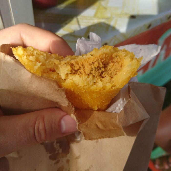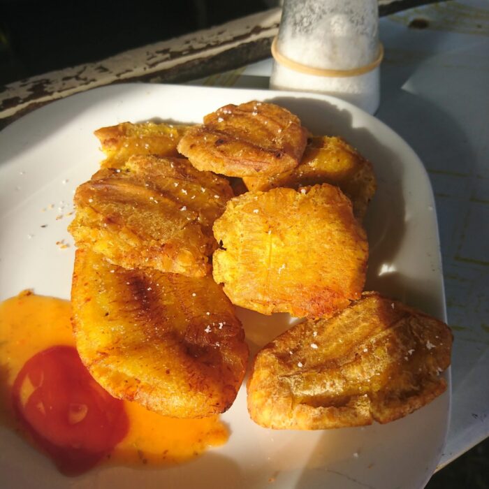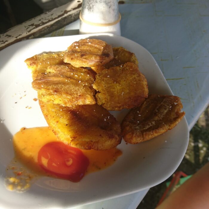 W Bocas mieliśmy też okazję spróbować jedzenia w małej, lokalnej garkuchni prowadzonej przez latynoską „mamusię”. Serwowała gotowane banany z ostrym sosem — mieszanka wybuchowa, ale warto pamiętać, że były to zupełnie inne banany niż te znane u nas. Takie miejsca może nie zawsze grzeszą sterylną czystością, ale smakują najbardziej lokalnie — i wg mnie właśnie ich warto szukać.
