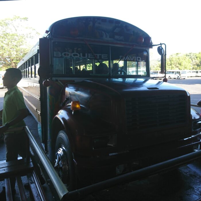 Z Boquete najpierw jedzie się busem (tym razem już nie chicken busem), a następnie trzeba przesiąść się na łódź. Miejscowi pomagają w załadunku bagażu, a potem proszą o dobrowolny napiwek — każdy daje tyle, ile uzna za stosowne.