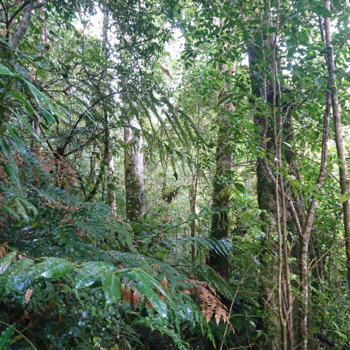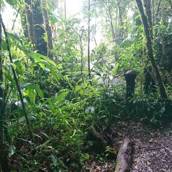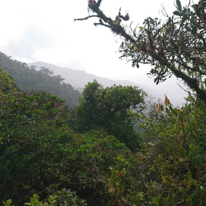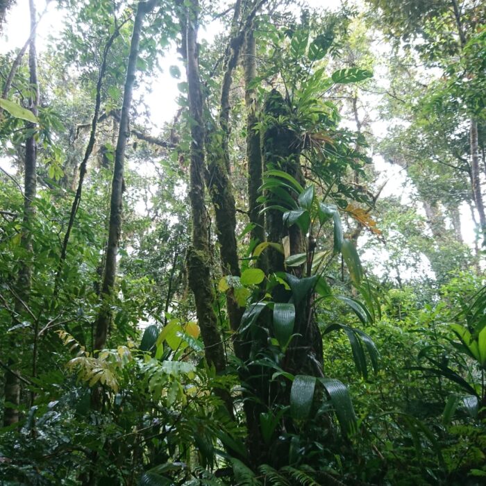 Tego dnia niemal bez przerwy padał intensywny tropikalny deszcz, ale tuż pod samym szczytem pojawiło się krótkie okienko pogodowe. Cała wyprawa miała niesamowity klimat: błoto, mgła, chłód i narastające zmęczenie sprawiały, że momentami wyglądało to bardziej jak ekspedycja niż zwykły trekking.
