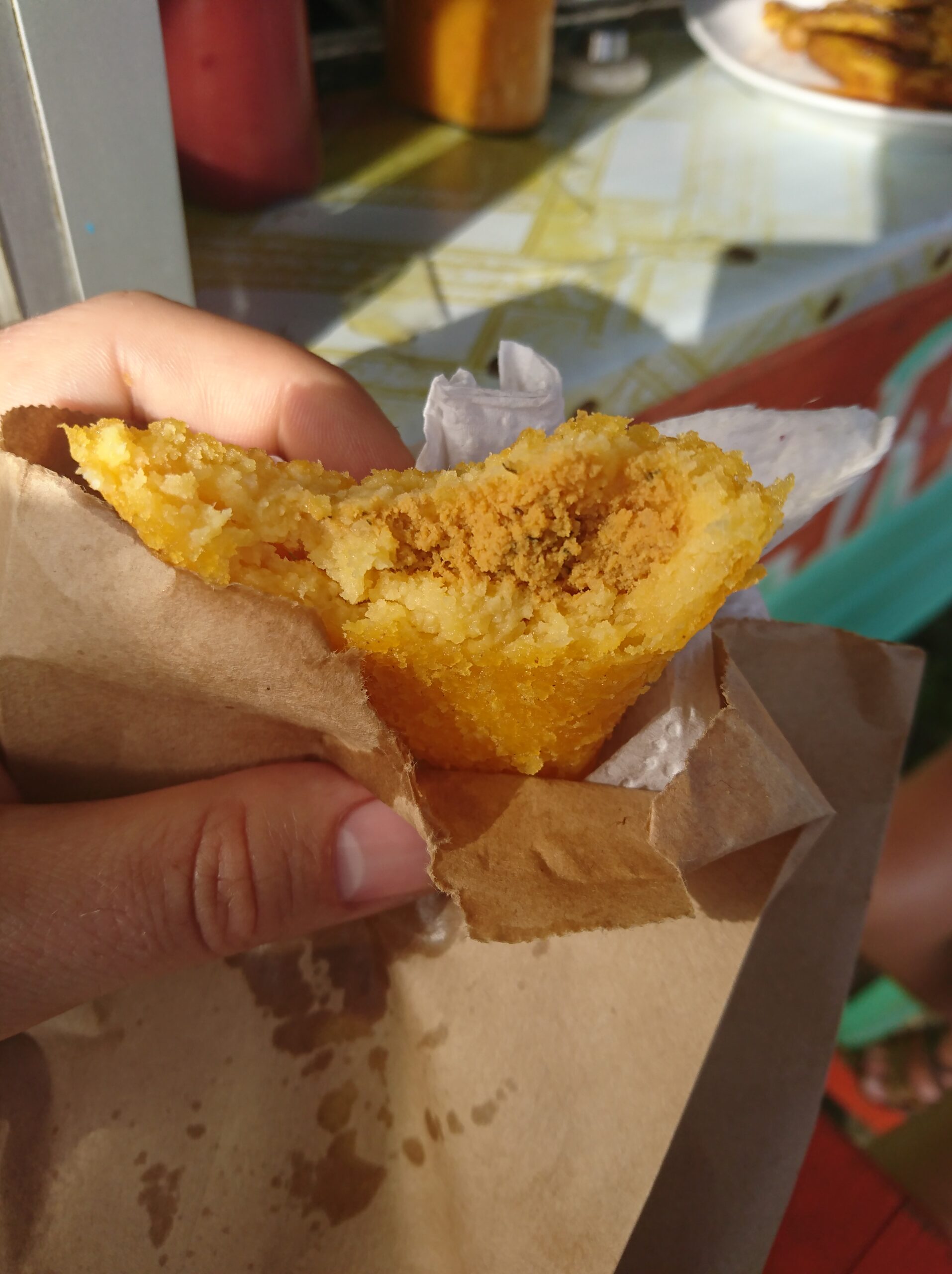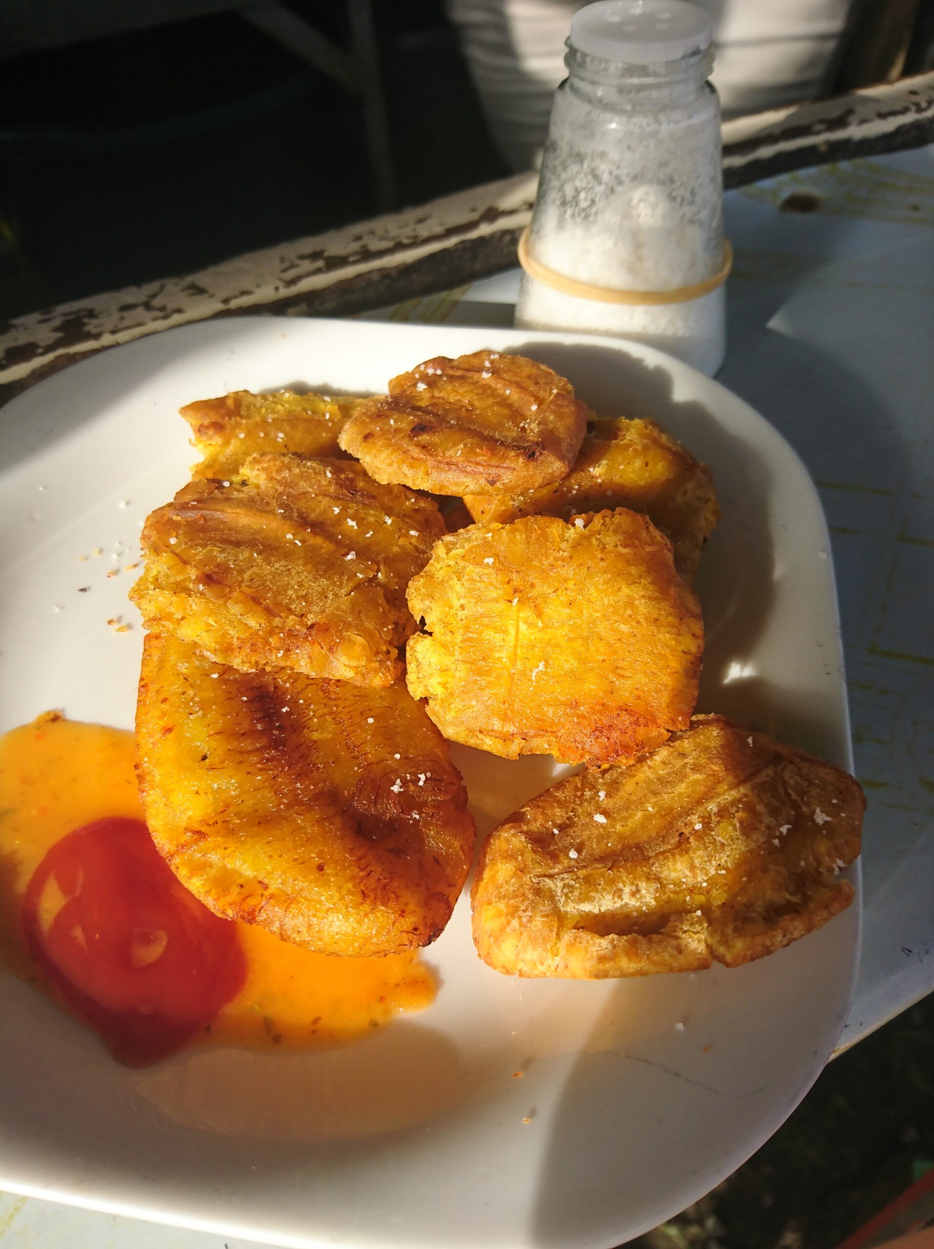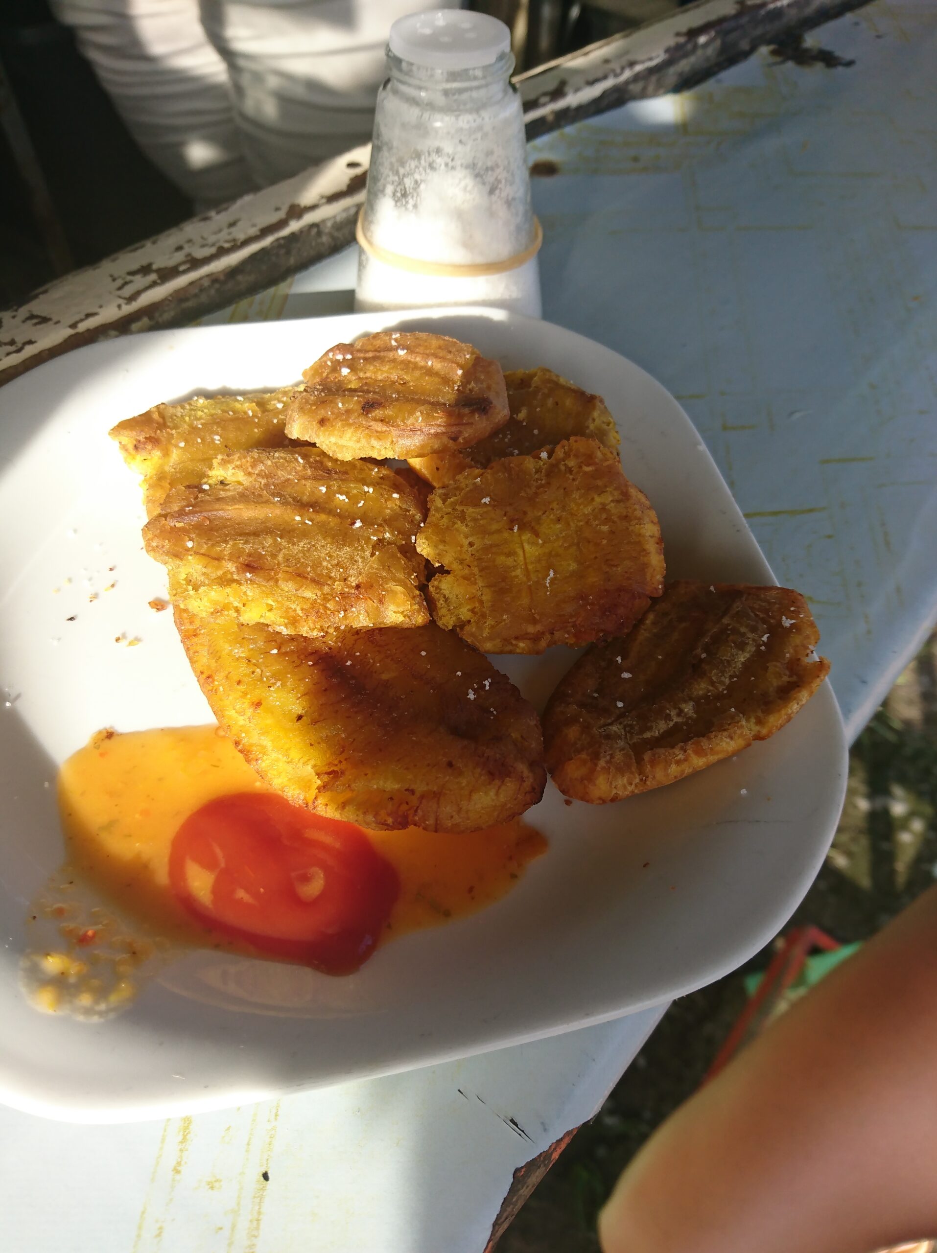 W Bocas mieliśmy też okazję spróbować jedzenia w małej, lokalnej garkuchni prowadzonej przez latynoską „mamusię”. Serwowała gotowane banany z ostrym sosem — mieszanka wybuchowa, ale warto pamiętać, że były to zupełnie inne banany niż te znane u nas. Takie miejsca może nie zawsze grzeszą sterylną czystością, ale smakują najbardziej lokalnie — i wg mnie właśnie ich warto szukać.