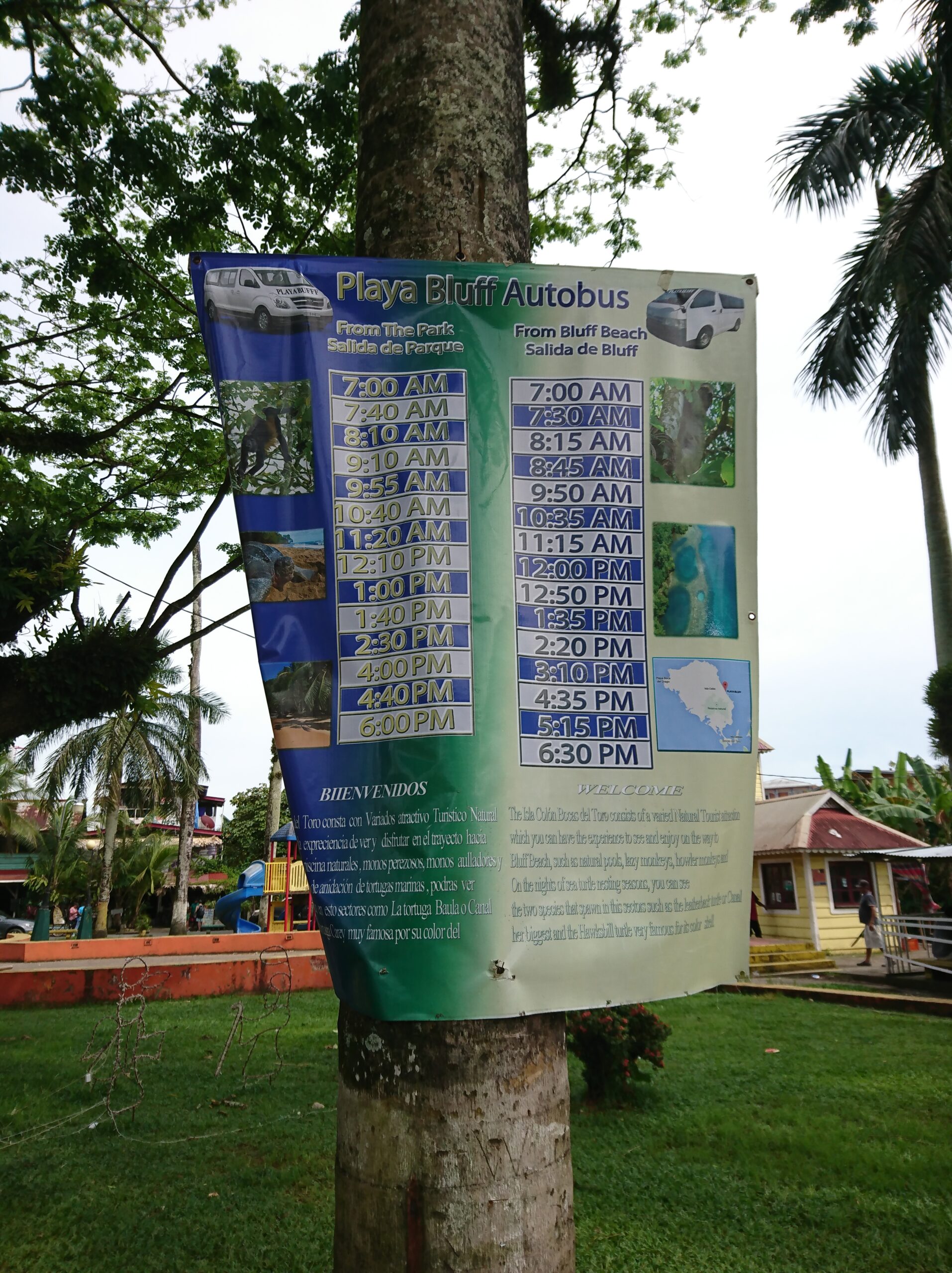 Z Boquete najpierw jedzie się busem (tym razem już nie chicken busem), a następnie trzeba przesiąść się na łódź. Miejscowi pomagają w załadunku bagażu, a potem proszą o dobrowolny napiwek — każdy daje tyle, ile uzna za stosowne.