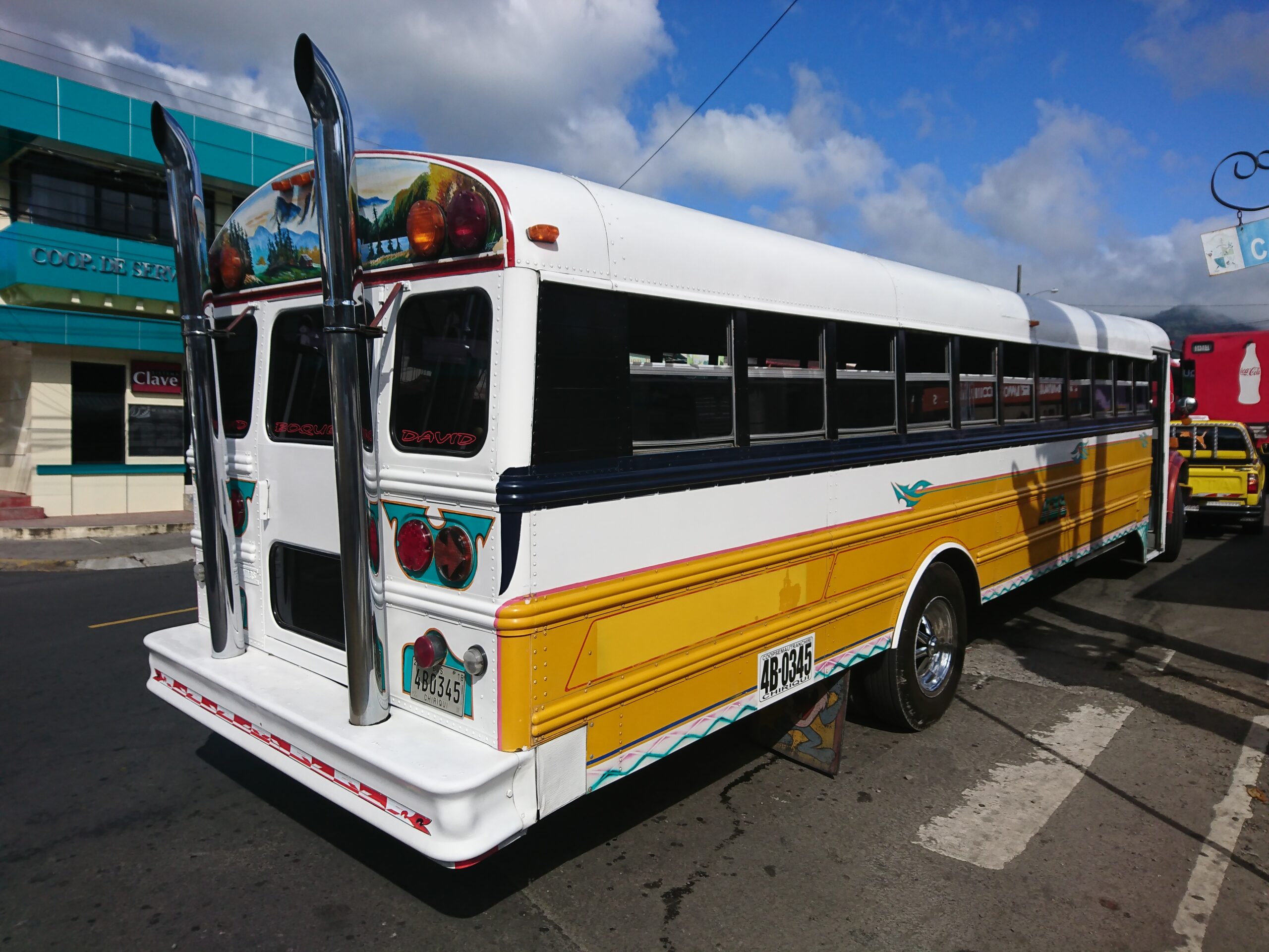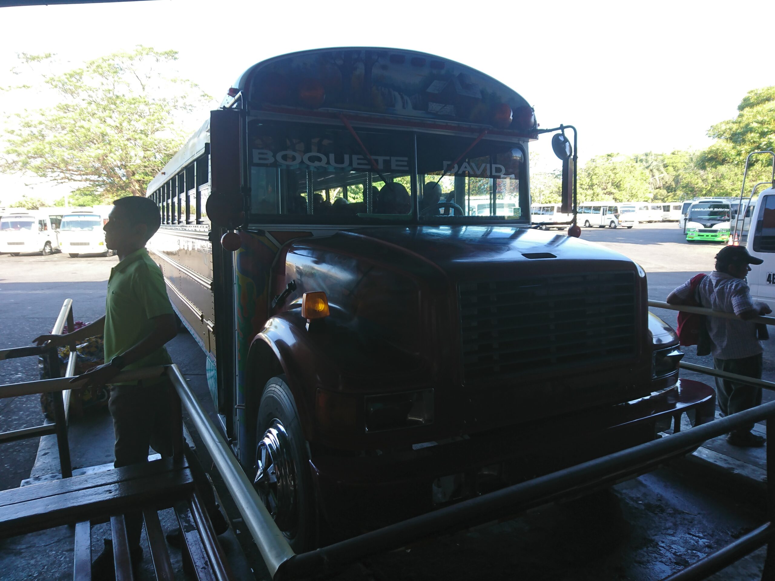 W David trzeba wziąć taksówkę, żeby dostać się na dworzec autobusowy, a stamtąd zdecydowanie warto już skorzystać z lokalnego transportu, czyli chicken busów, inaczej zwanych Diablos Rojos. Są to dawne, wysłużone autobusy szkolne z USA, przerabiane i fantazyjnie malowane przez ich kierowców. Od razu czuć prawdziwy latynoski klimat.