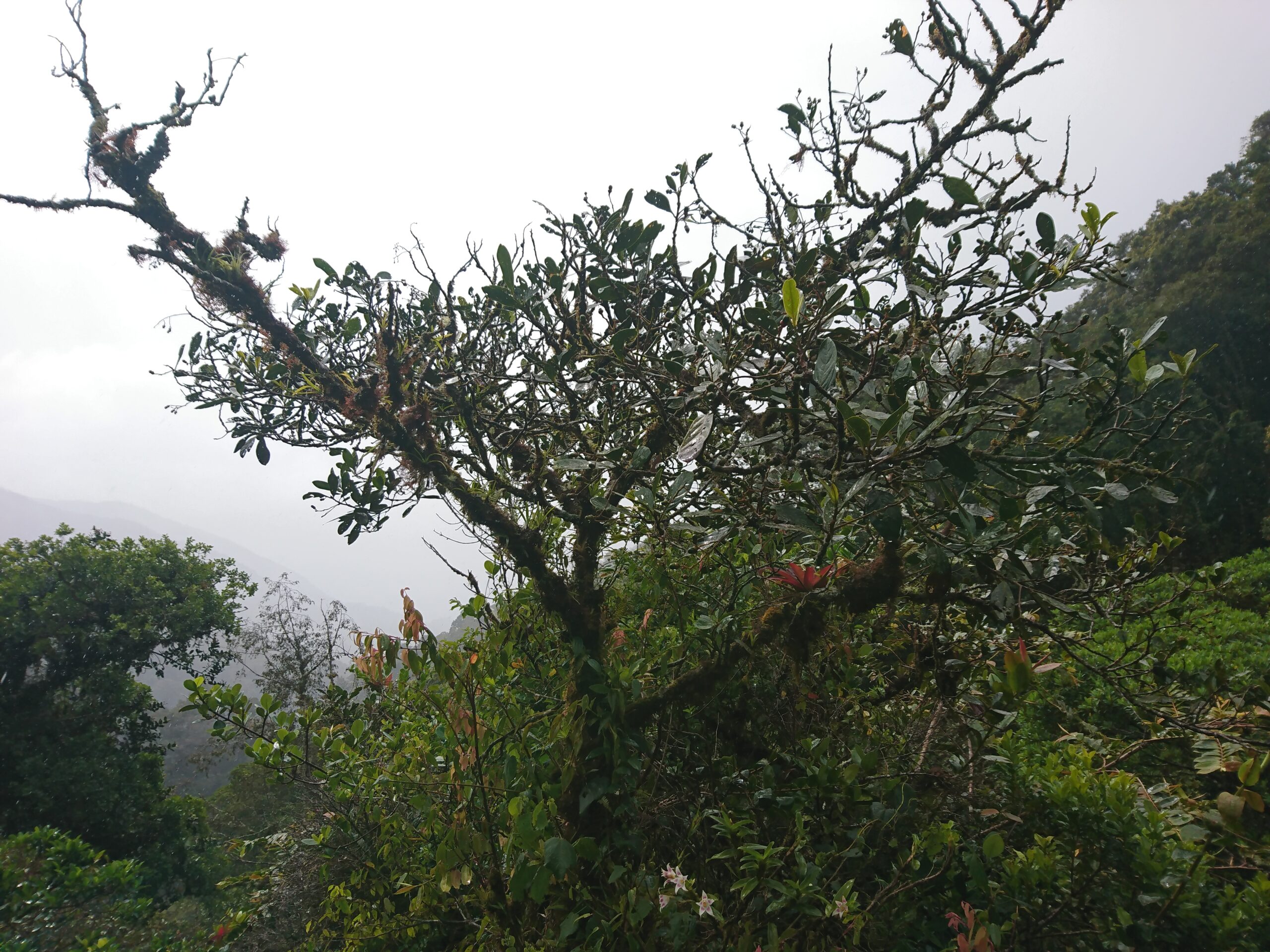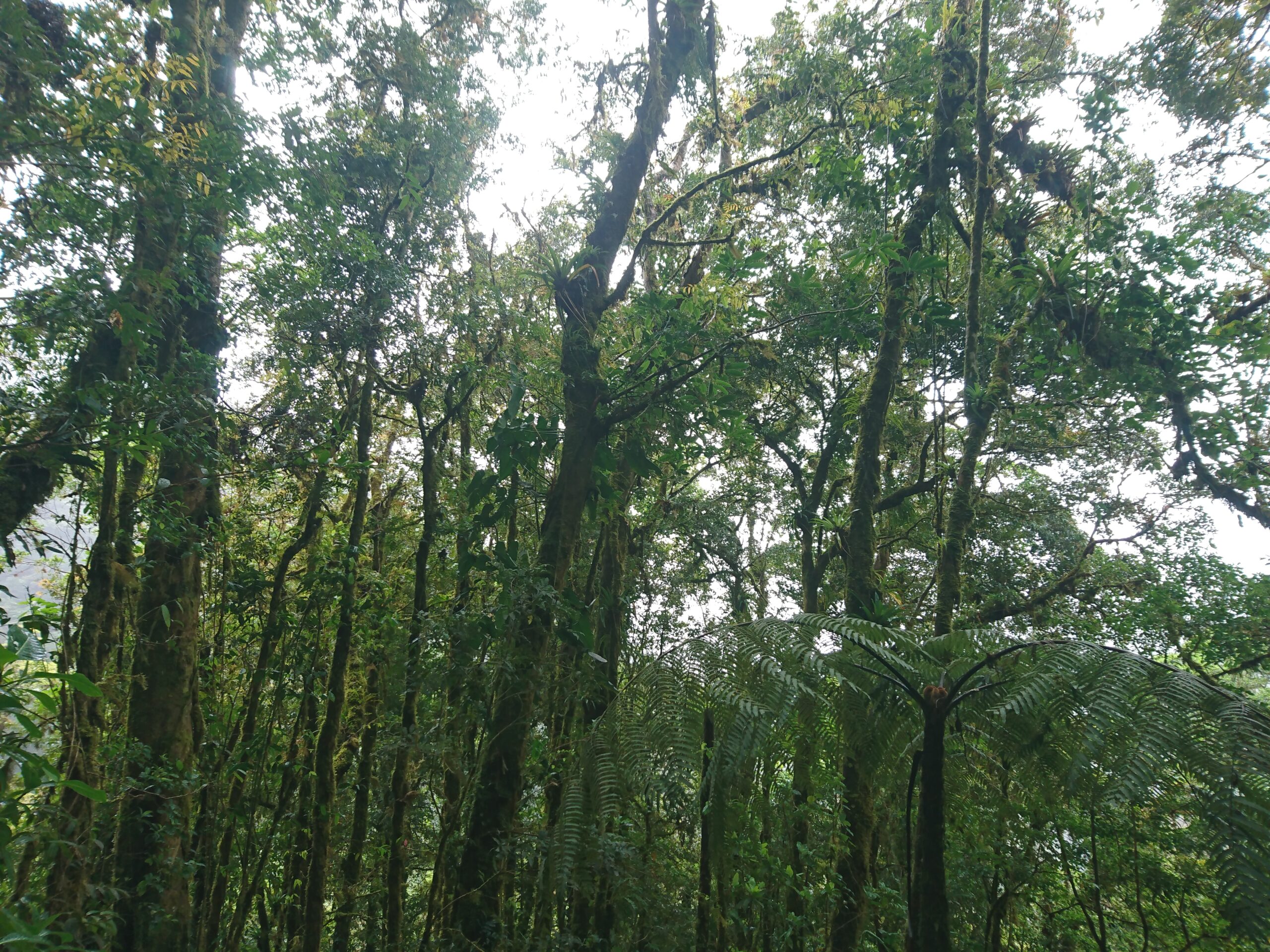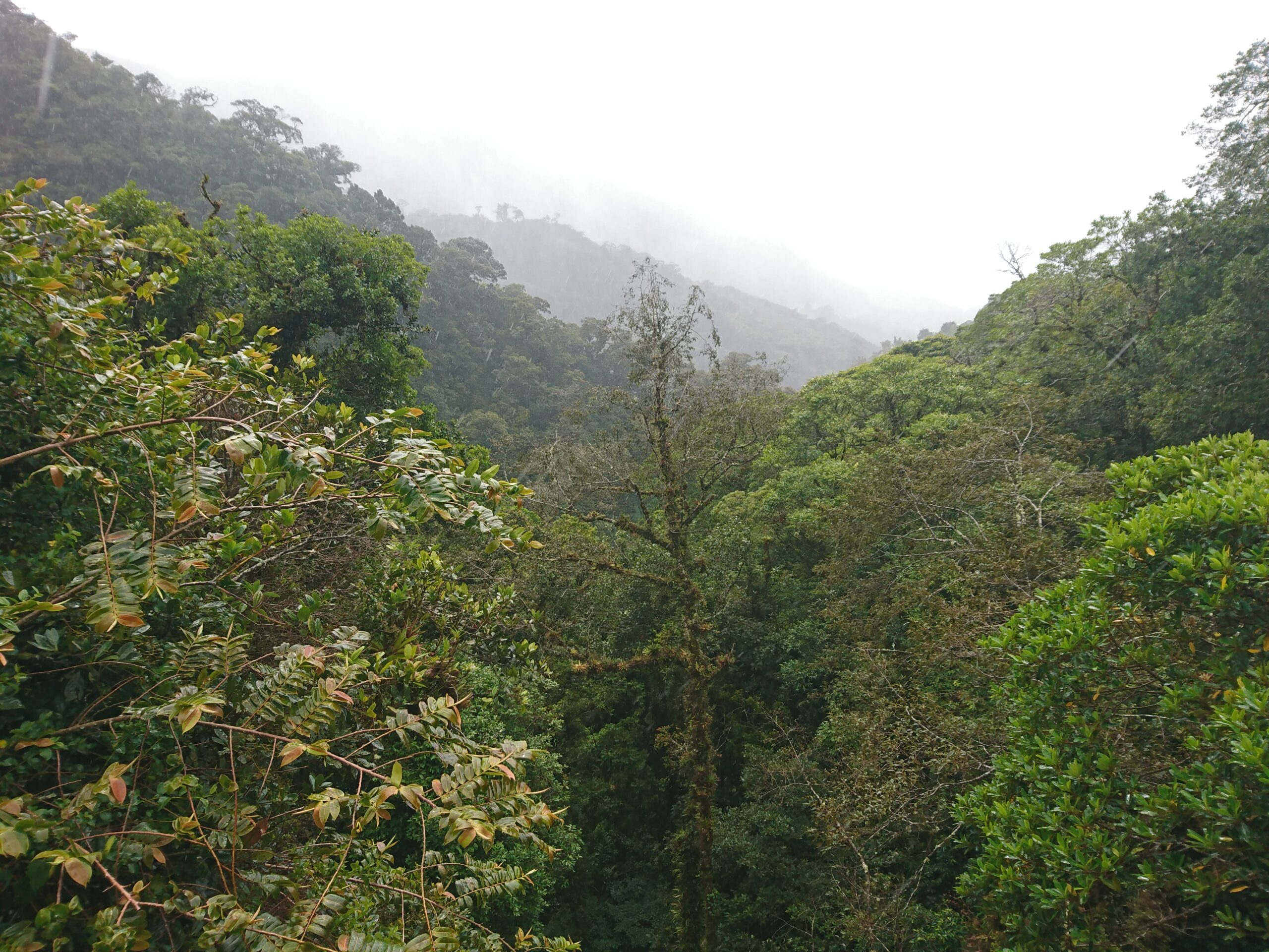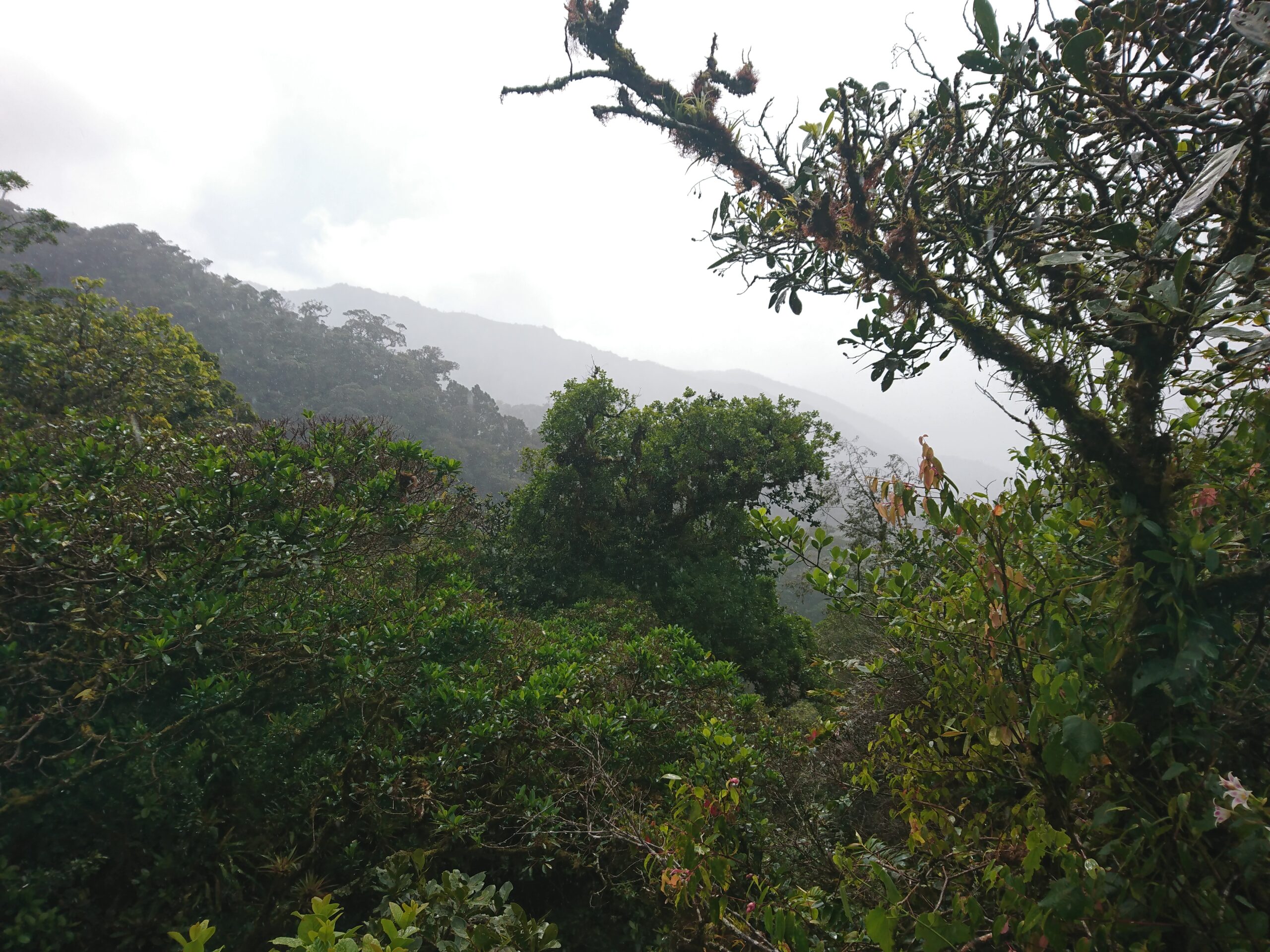 Tego dnia niemal bez przerwy padał intensywny tropikalny deszcz, ale tuż pod samym szczytem pojawiło się krótkie okienko pogodowe. Cała wyprawa miała niesamowity klimat: błoto, mgła, chłód i narastające zmęczenie sprawiały, że momentami wyglądało to bardziej jak ekspedycja niż zwykły trekking.