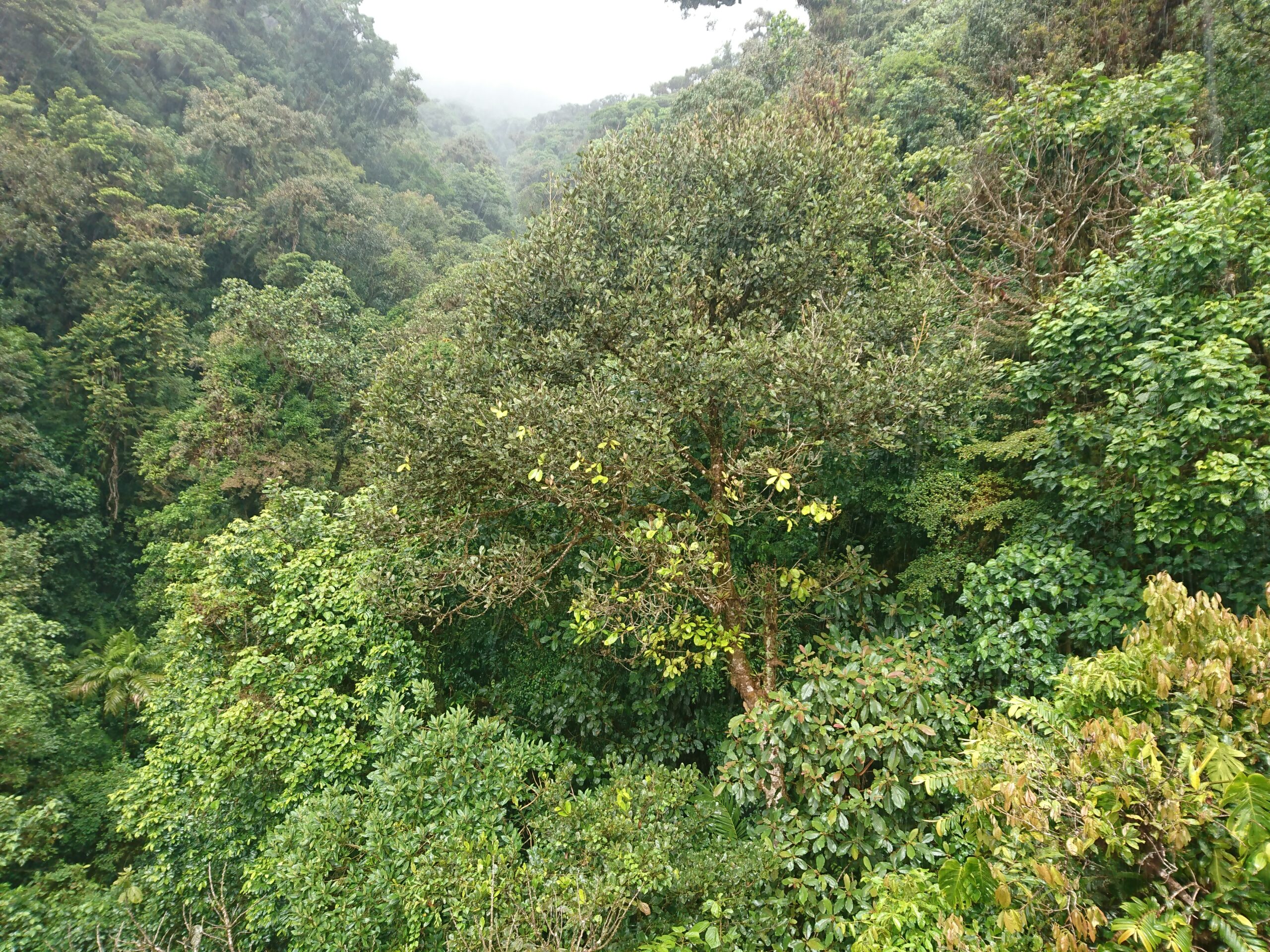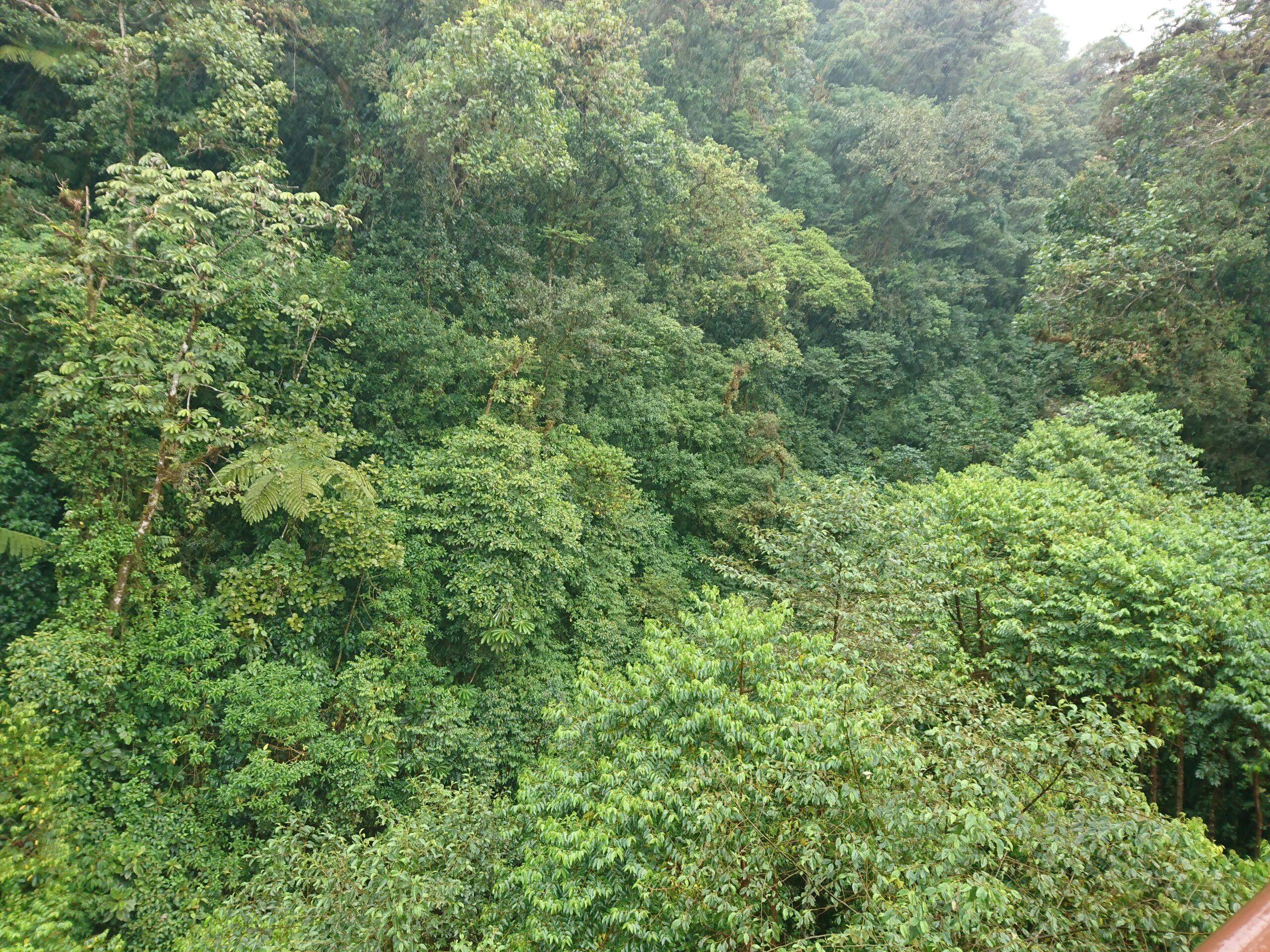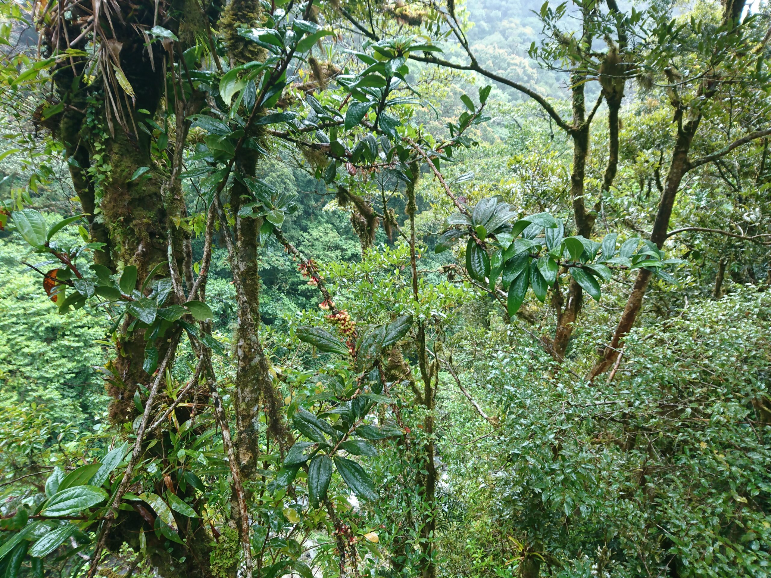 Tego dnia niemal bez przerwy padał intensywny tropikalny deszcz, ale tuż pod samym szczytem pojawiło się krótkie okienko pogodowe. Cała wyprawa miała niesamowity klimat: błoto, mgła, chłód i narastające zmęczenie sprawiały, że momentami wyglądało to bardziej jak ekspedycja niż zwykły trekking.