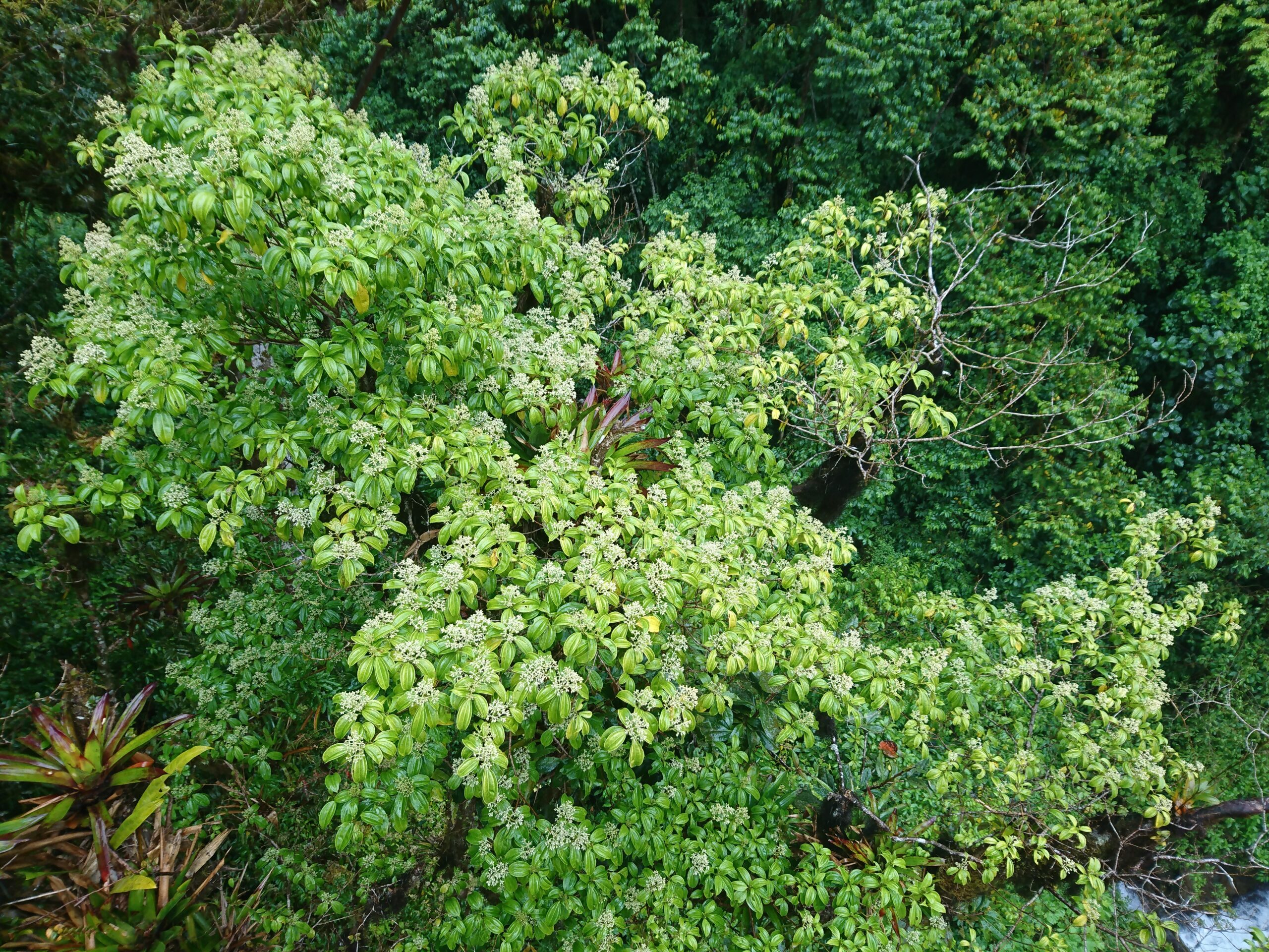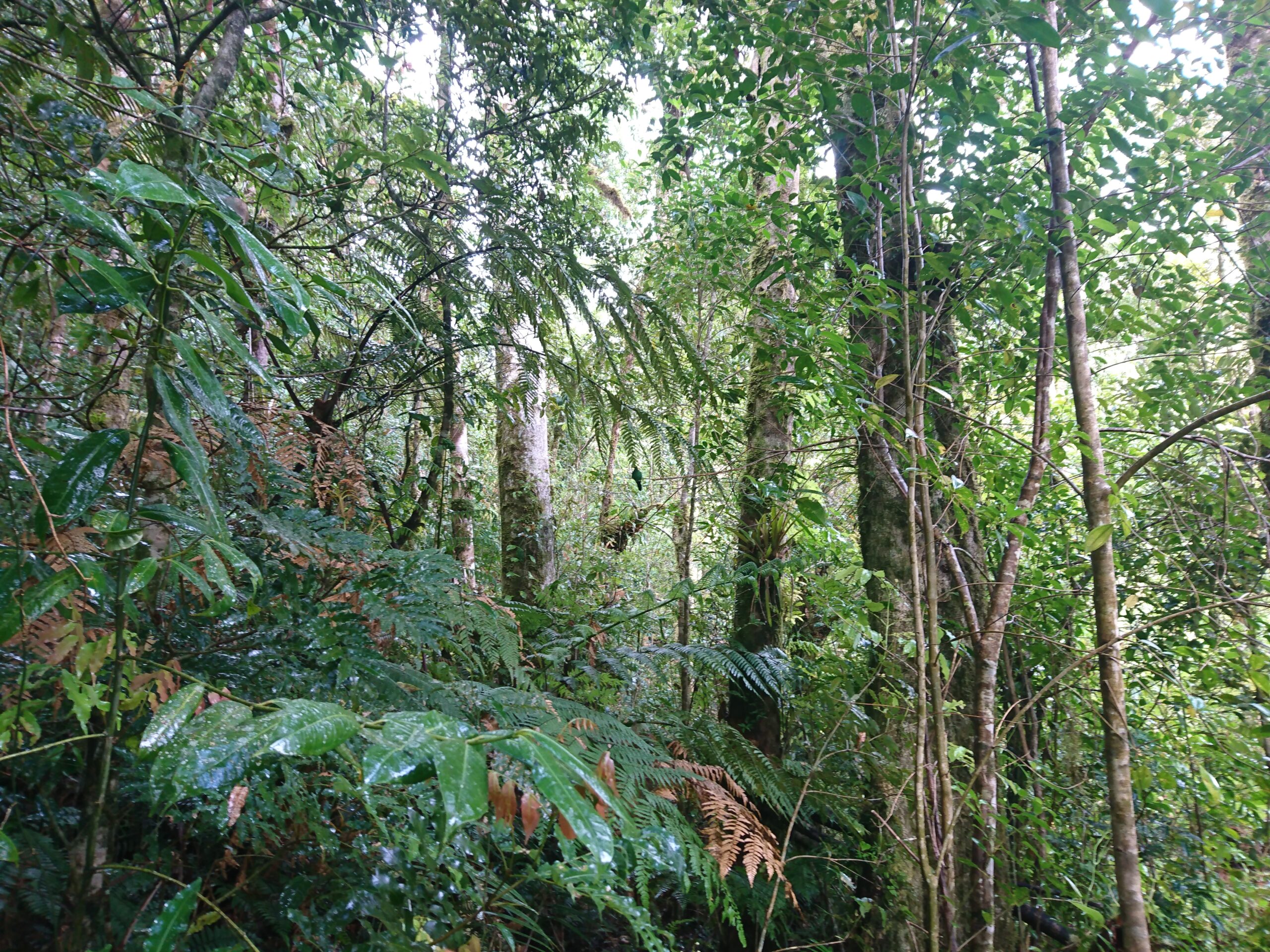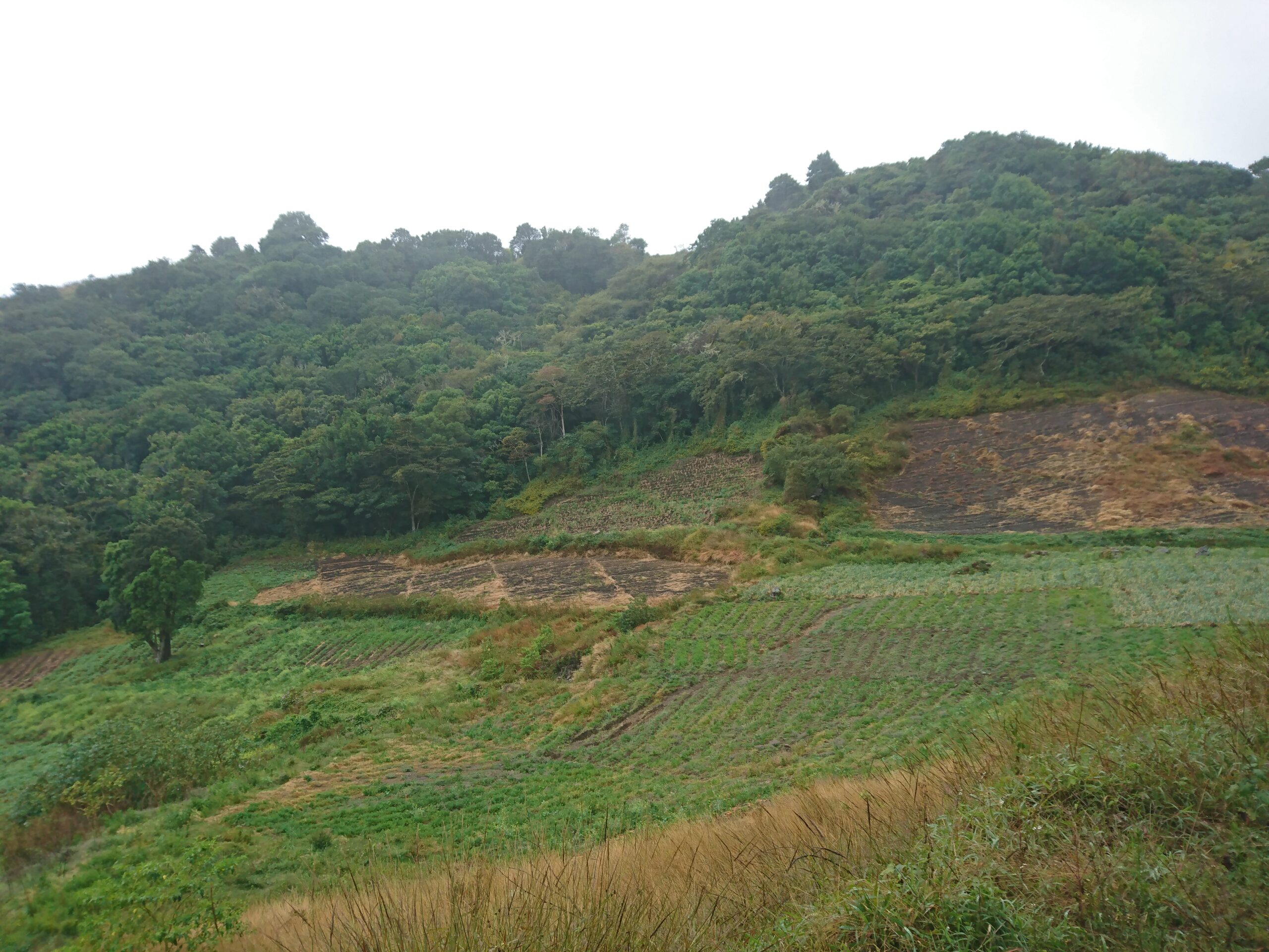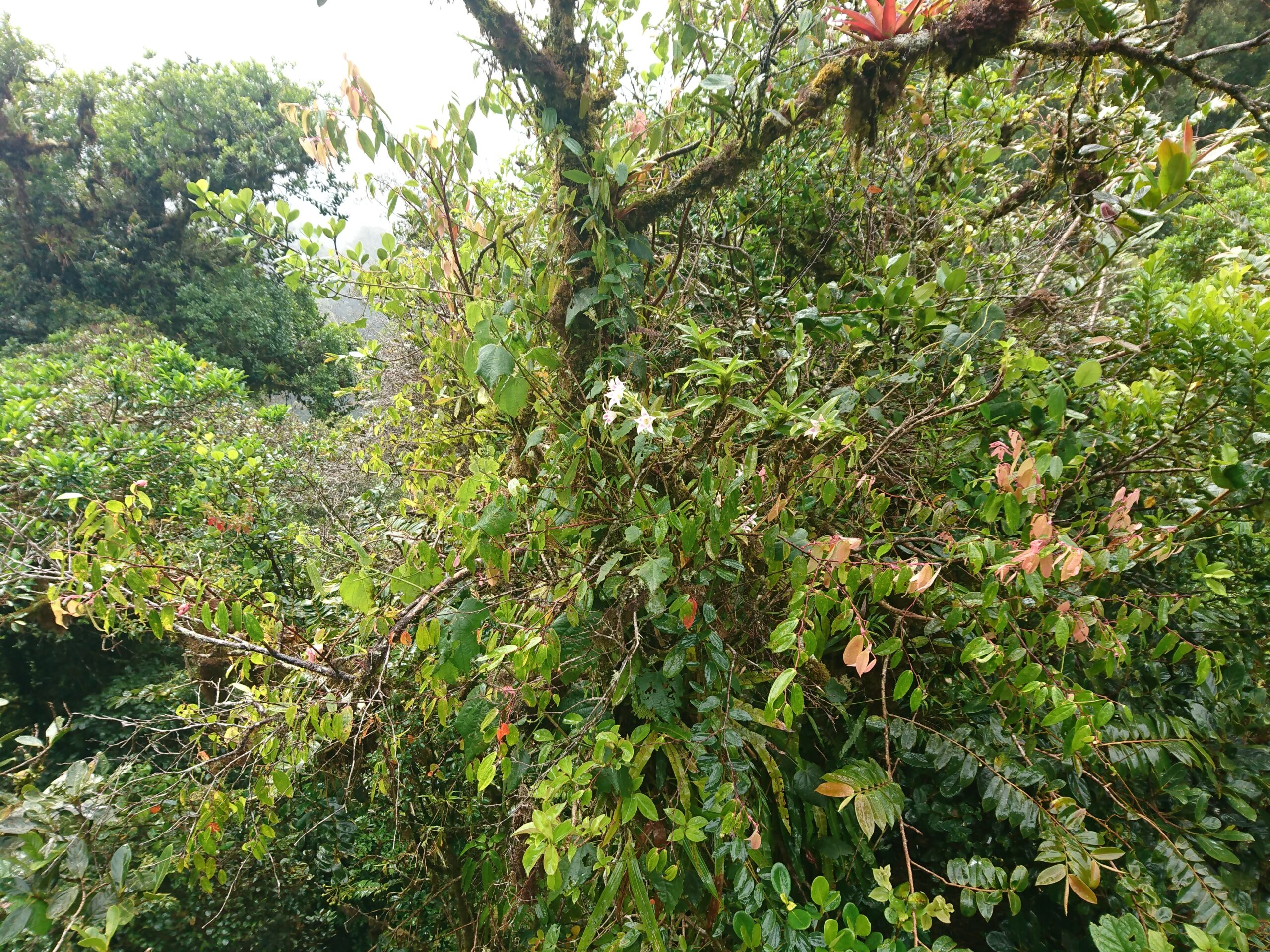 Tego dnia niemal bez przerwy padał intensywny tropikalny deszcz, ale tuż pod samym szczytem pojawiło się krótkie okienko pogodowe. Cała wyprawa miała niesamowity klimat: błoto, mgła, chłód i narastające zmęczenie sprawiały, że momentami wyglądało to bardziej jak ekspedycja niż zwykły trekking.