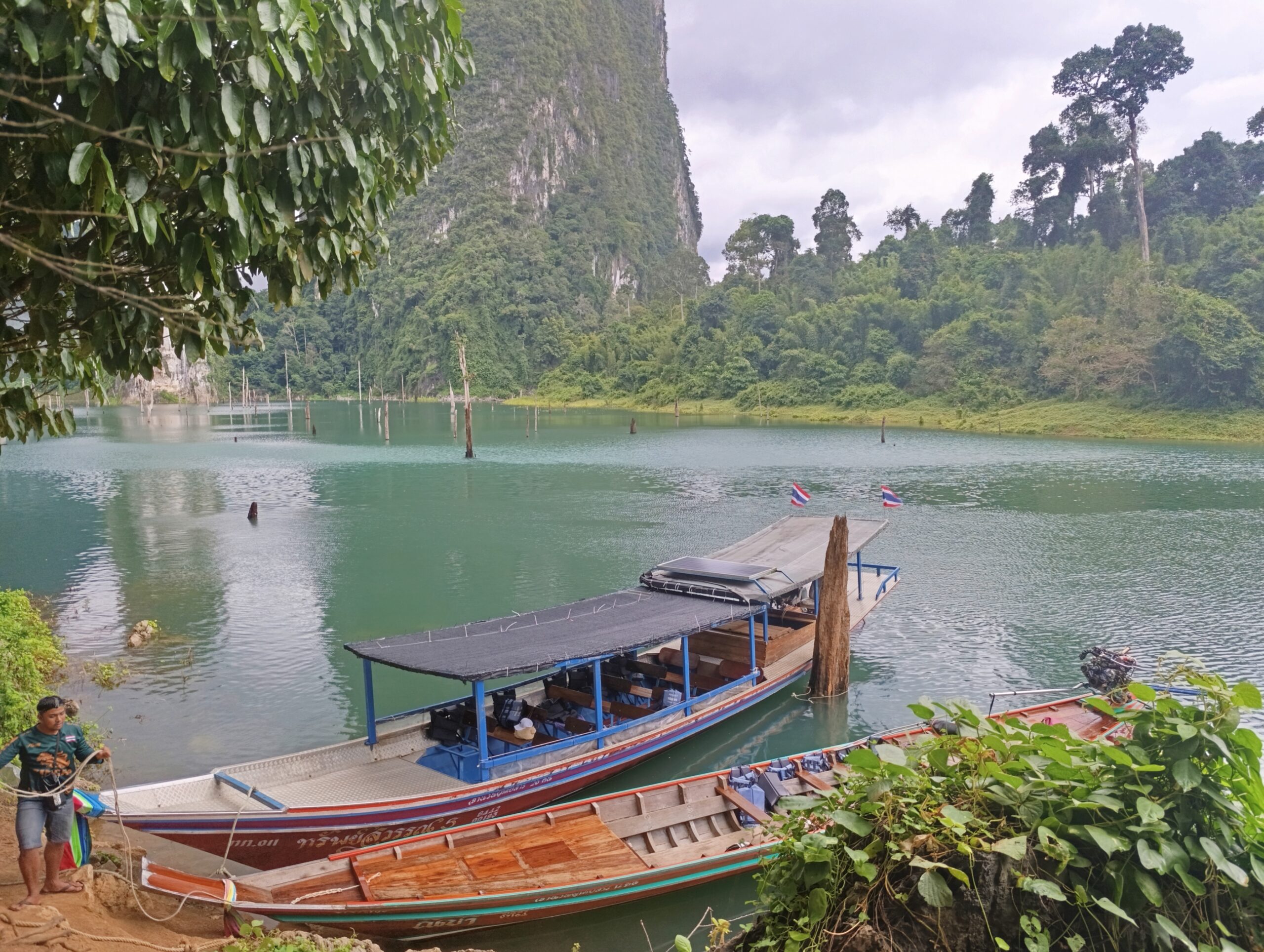 Kolejna nasza atrakcja to wycieczka do Parku Narodowego Khao Sok- udało się nam dzień wcześniej zarezerwować auto, aby wybrać się na całodniową wycieczkę nad jezioro Cheow Lan. Dojazd z Khao Lak do portu nad jezioro trwa ok.2 godziny. Park Narodowy Khao Sok to jedno z najbardziej malowniczych i dzikich miejsc w Tajlandii, położone w prowincji Surat Thani. Obejmuje obszar około 739 km², w tym imponujące jezioro Cheow Lan, powstałe w wyniku budowy zapory Ratchaprapha w 1982 roku. To miejsce zachwyca różnorodnością krajobrazów – od gęstych lasów deszczowych, przez wapienne formacje skalne, aż po krystalicznie czyste wody jeziora.