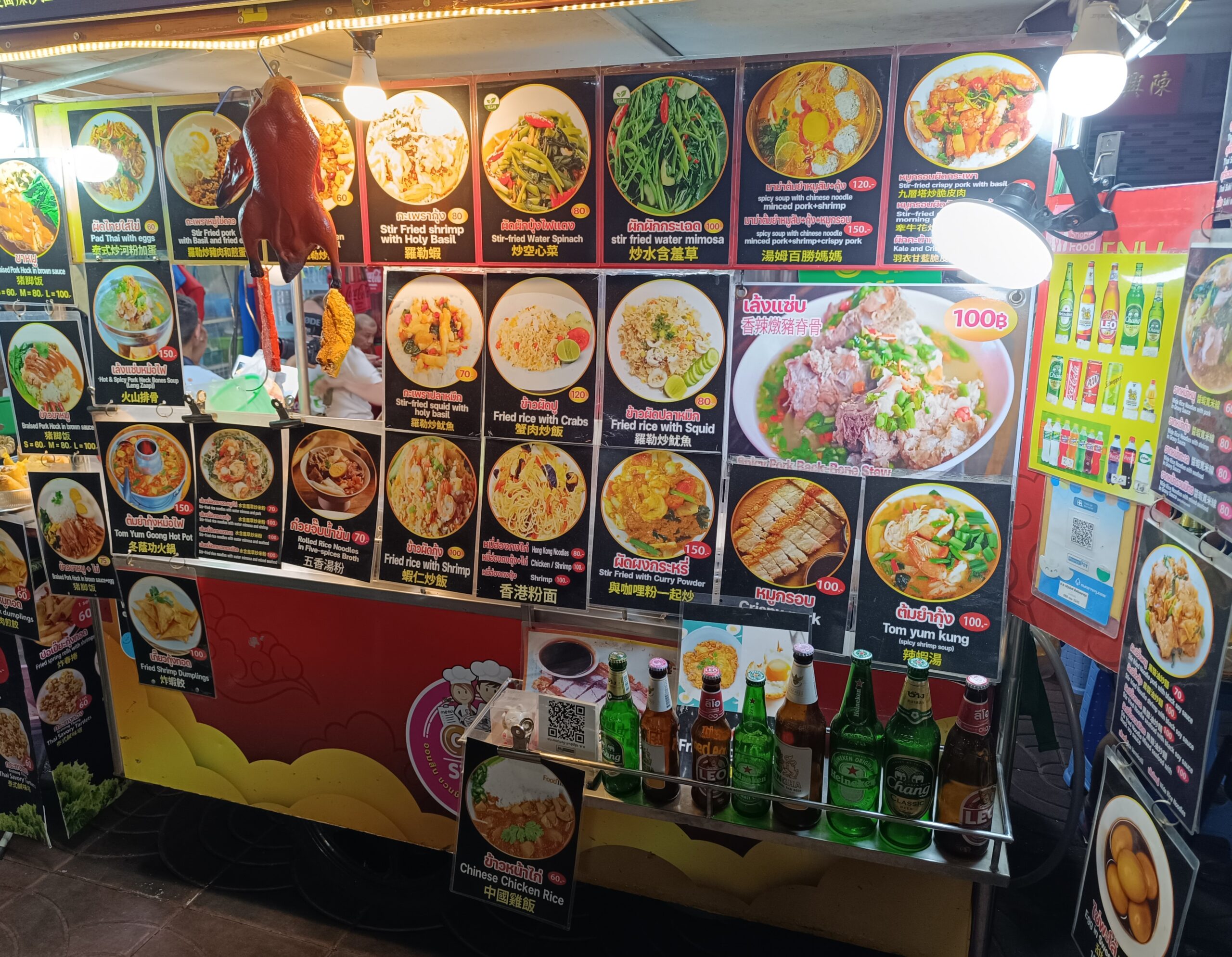 Wieczorem Chinatown staje się istnym rajem dla smakoszy – tu nikt nie wychodzi głodny. Stoiska z owocami morza, grillowanymi szaszłykami, naleśnikami z ośmiornicą, zupami wonton, kaczką po pekińsku, a nawet deserami z lodami kokosowymi – wszystko to przyciąga tłumy. Unosi się zapach czosnku, imbiru i kolendry, a dym z ulicznych kuchni dodaje całej scenerii lekko filmowego charakteru. Można oczywiście samemu wybrać gdzie się chce zjeść albo skorzystać z przewodnika, który zaprowadzi Was do jego zdaniem najciekawszych miejscówek.