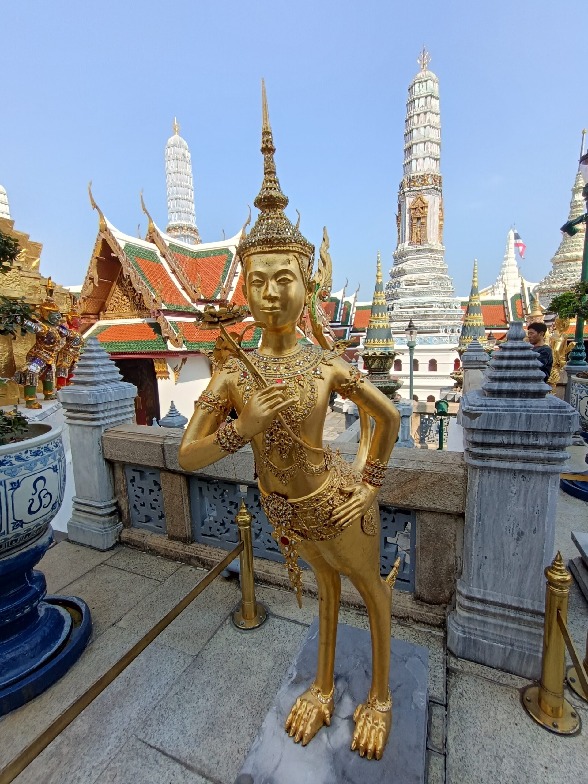 The Grand Palace to najważniejszy i najbardziej okazały zabytek Tajlandii – prawdziwa perła architektury, duchowości i historii. Znajduje się w samym sercu stolicy, tuż przy rzece Chao Phraya, i przez ponad 150 lat był oficjalną rezydencją królów Tajlandii (Syjamu). Wejście znajduje się od strony ulicy Na Phra Lan , jedyne wejście przez bramę Wiset Chai Si. Bilet kupuje się w kasie, jeśli ktoś będzie chciał odsprzedać Wam bilet przed wejściem może być to oszustwo. Dress Code to zakryte ramiona i kolana. Warto przyjść rano, aby uniknąć upałów. Wielki Pałac to nie jeden budynek, ale cały rozległy kompleks pełen pałaców, dziedzińców, pawilonów, świątyń i krużganków, otoczony murem długości prawie 2 km. Każdy element zachwyca misternymi zdobieniami, złotem, kolorową ceramiką i tradycyjną tajską architekturą.