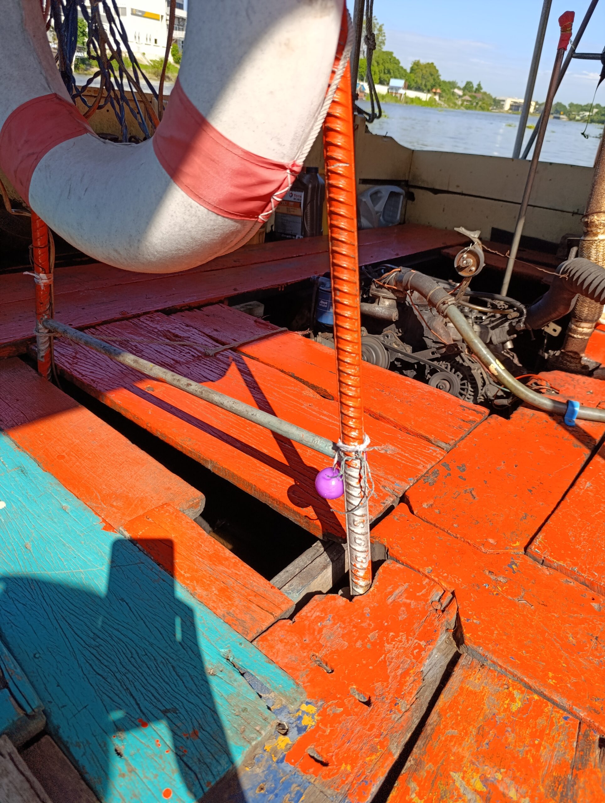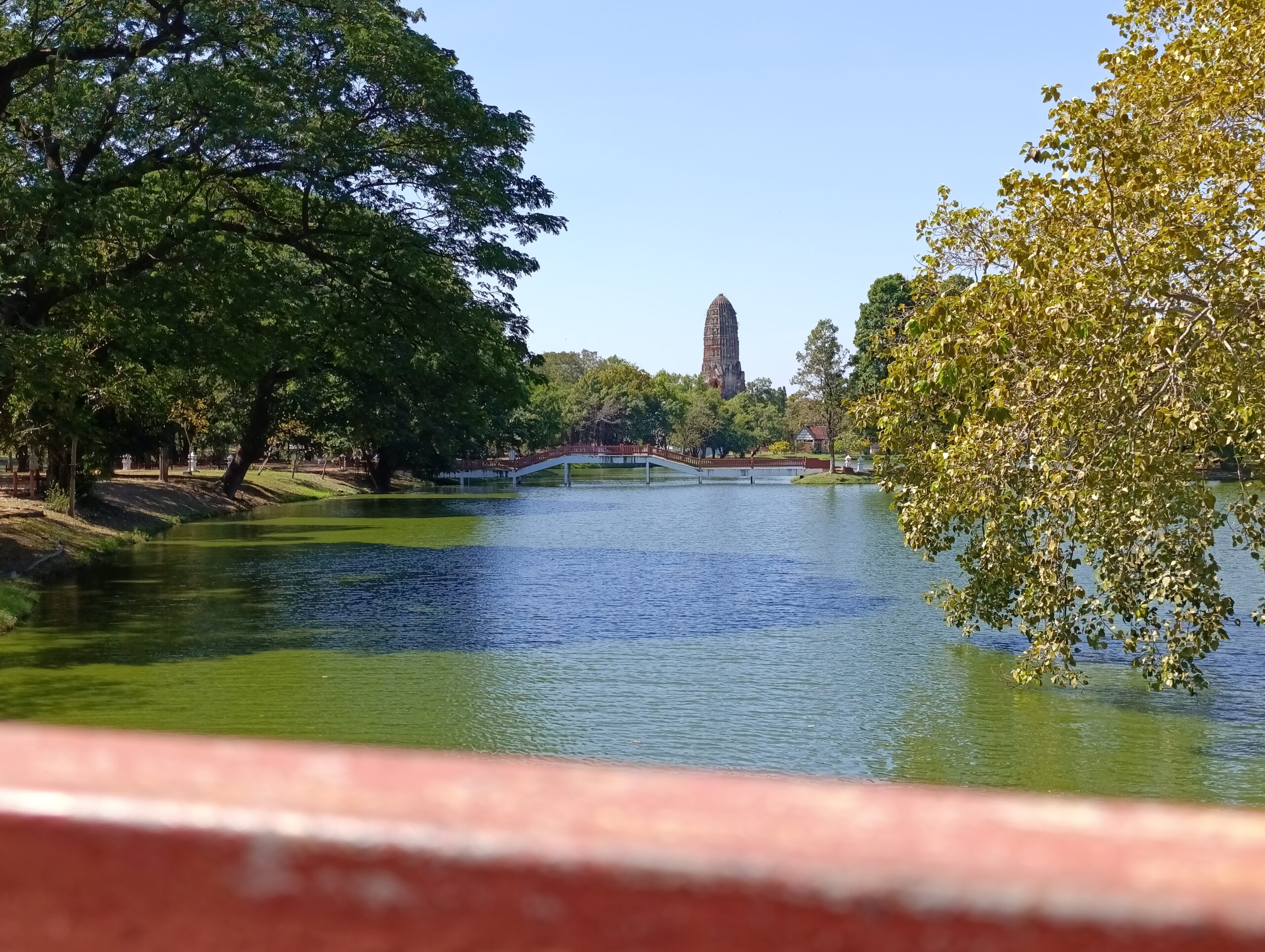 Ze stacji Ayutthaya przeszliśmy na nogach nad rzekę Pa Sak, którą co chwilę kursują łodzie motorowe transportujące ludzi na drugi brzeg rzeki gdzie wynajęliśmy rower i pojechaliśmy zwiedzać. Rower można również wynająć przed przeprawą – koszt jest taki sam ale trzeba dodatkowo zapłacić za przewóz roweru na łodzie, niemniej cena to ok 1 zł także nie robi różnicy, jedynie jest to więcej problemów. Wg lepiej wynająć po przeprawie.