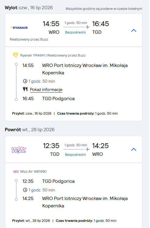 ➡️Wrocław – Podgorica 16.07.2026 – Ryanair