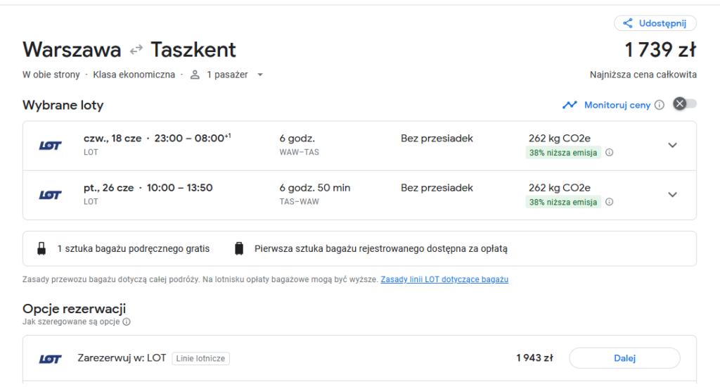 ✈️ Loty Warszawa – Taszkient – Warszawa: 3478 PLN (1739PLN / os.)