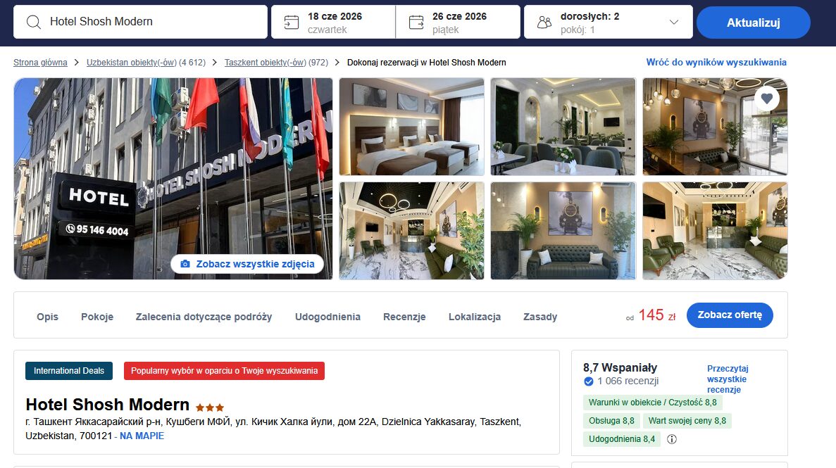 👉 Świetna opcja na wygodny i niedrogi pobyt w stolicy Uzbekistanu