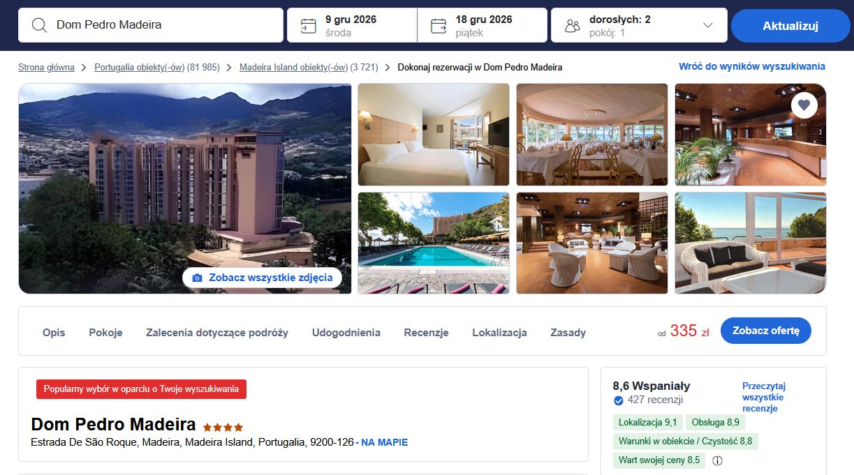 Dom Pedro Madeira to komfortowy hotel położony tuż przy plaży w zatoce Machico, z pięknym widokiem na ocean 🌊 🌿