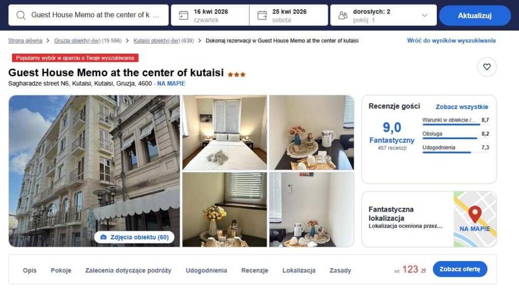 👉 Dobry wybór, jeśli chcesz topową lokalizację + dobrą cenę + wszystko w zasięgu spaceru – idealnie na city break 🇬🇪✈️