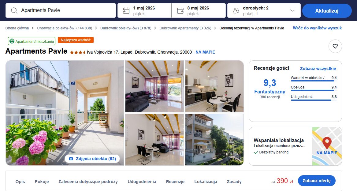 👉 Dobry wybór, jeśli chcesz komfort + dobra lokalizacja + rozsądna cena – idealnie na tygodniowy wypad do Chorwacji 🇭🇷