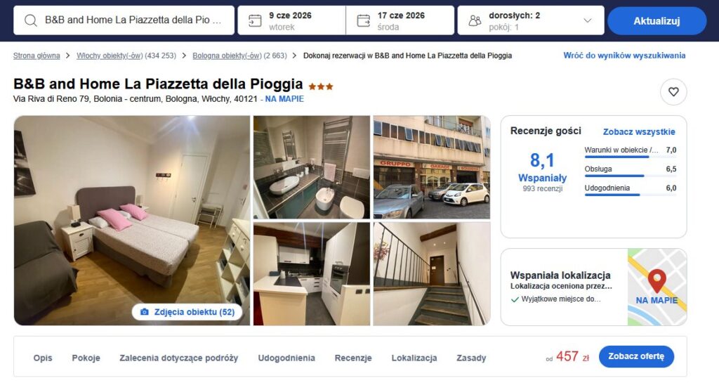 👉 Dobry wybór, jeśli chcesz świetną lokalizację + włoski klimat + rozsądną cenę – idealnie na kilka dni w Bolonii 🇮🇹✈️
