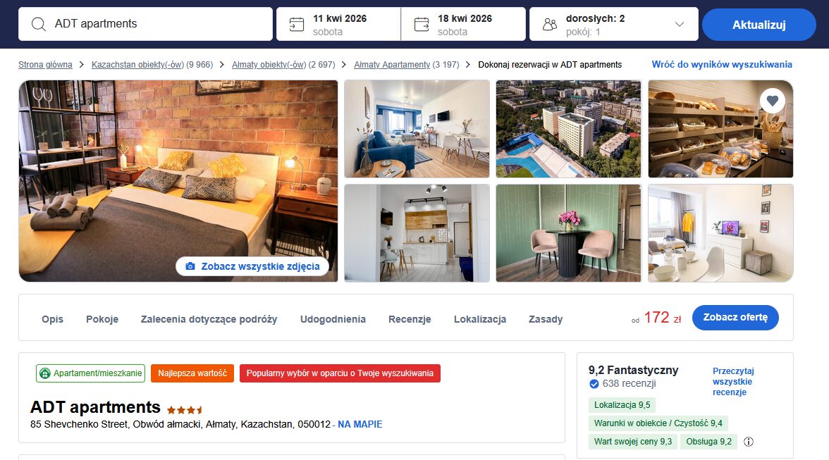 ADT Apartments w Ałmaty to komfortowe apartamenty położone blisko centrum miasta, co czyni je dobrą bazą do zwiedzania najważniejszych atrakcji.