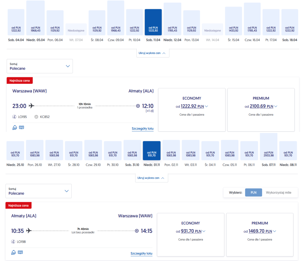 ✈️ Loty Warszawa – Ałmaty – Warszawa: 4308 PLN 2154PLN / os.)