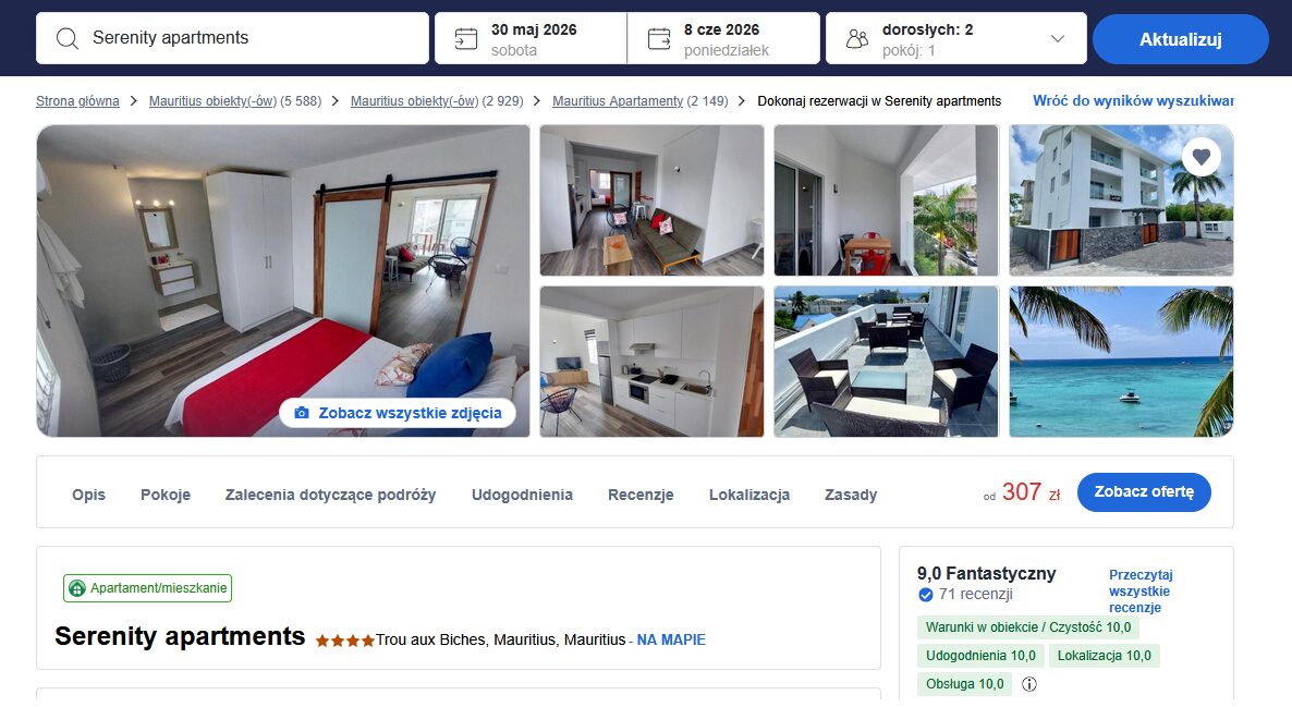 Serenity Apartments to komfortowe apartamenty na Mauritiusie, położone blisko plaży oraz lokalnych restauracji i sklepów. To dobre miejsce na spokojny wypoczynek na wyspie.