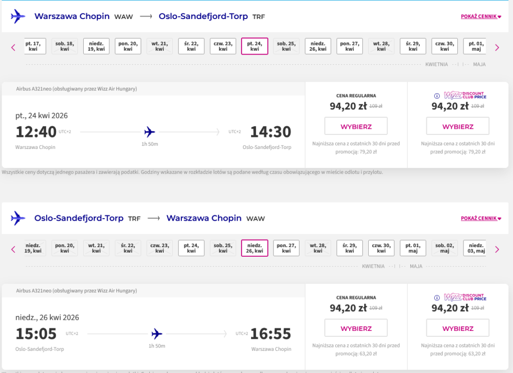 ✈️ Loty Warszawa – Oslo – Warszawa: 188PLN/os