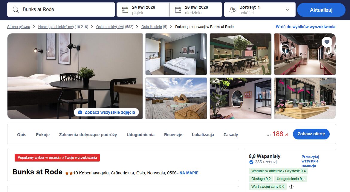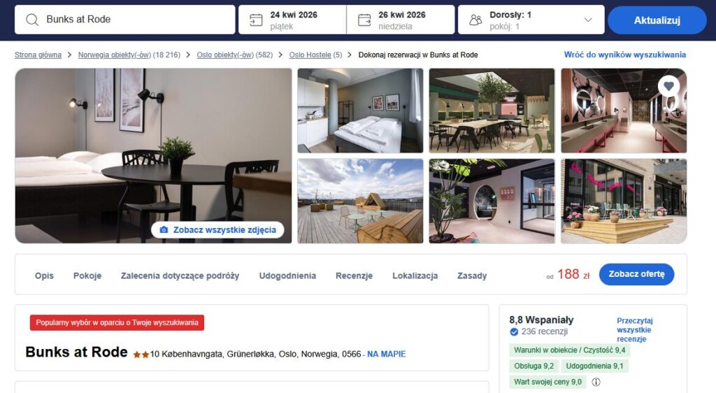 🛏️Nocleg w Oslo 188PLN/dobę (rezerwacja poniżej)