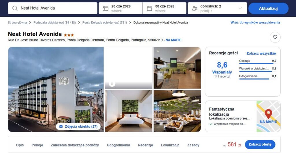 👉 Dobry wybór, jeśli chcesz topową lokalizację + dobry standard + świetną bazę do zwiedzania wyspy 🇵🇹✈️