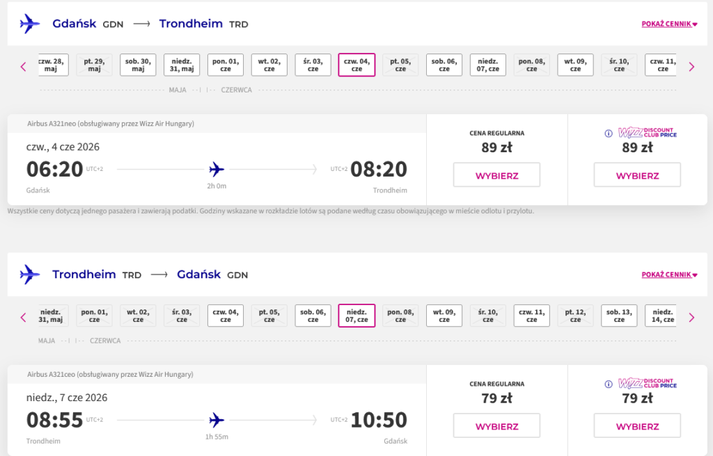 ✈️ Loty Gdańsk – Trondheim – Gdańsk: od 336PLN (168PLN / os.)