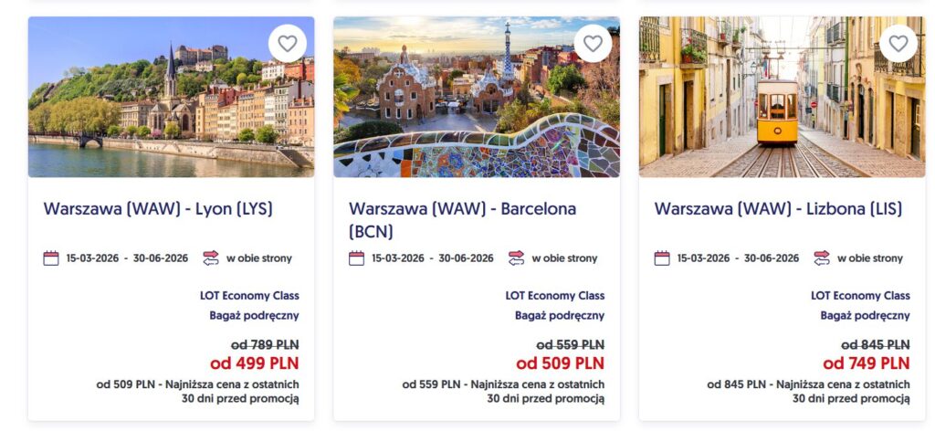 🚨 Tylko dziś: Szalona Środa LOT – Barcelona, Lizbona i Lyon w promocyjnych cenach!