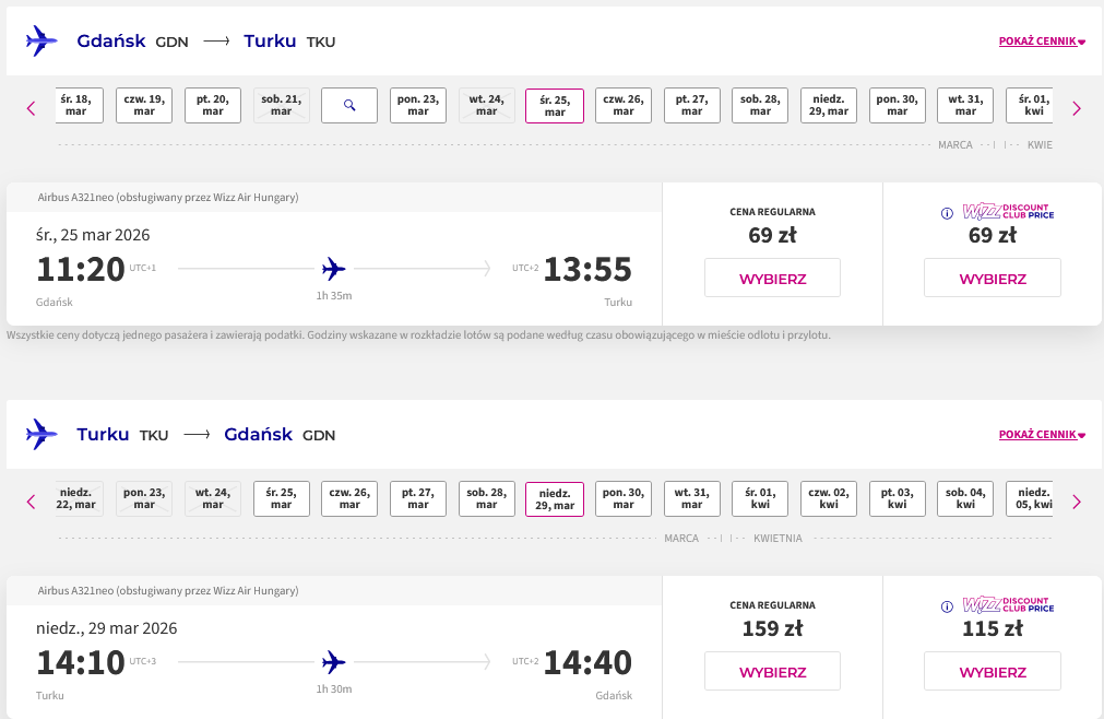 ✈️ Loty Gdańsk – Turku – Gdańsk: 456PLN 228PLN / os.)