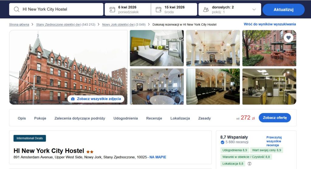 HI New York City Hostel – nowoczesny obiekt w świetnej lokalizacji na Manhattanie, blisko Central Parku i stacji metra 🌆