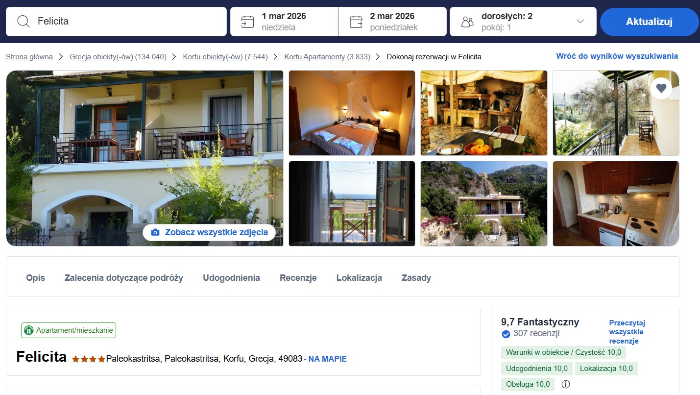Felicita – kameralny obiekt położony wśród zieleni i gajów oliwnych, ok. 500 m od plaży w malowniczej Paleokastritsa