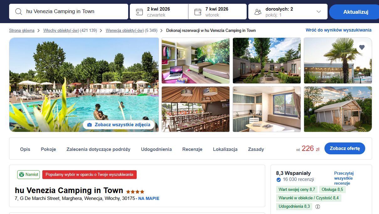 Camping Village Jolly to świetna opcja na budżetowy nocleg blisko Wenecji 🌿